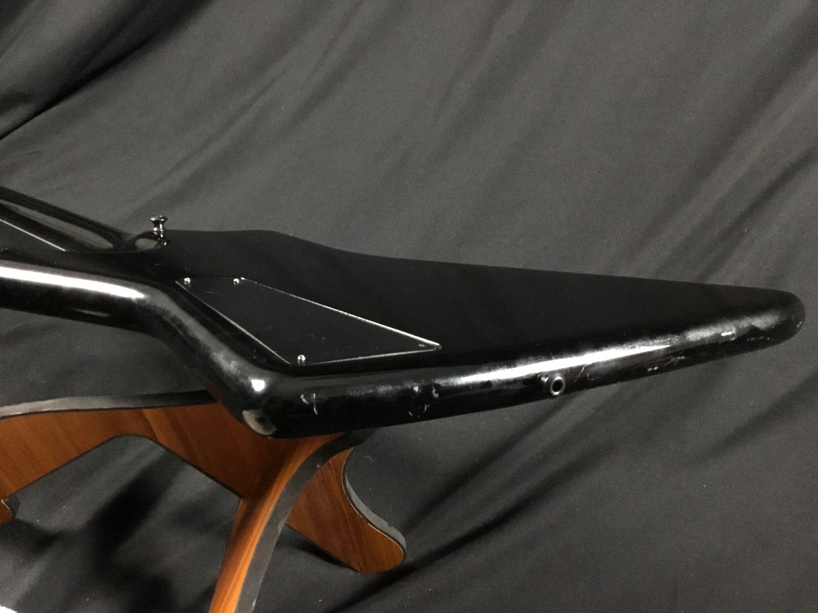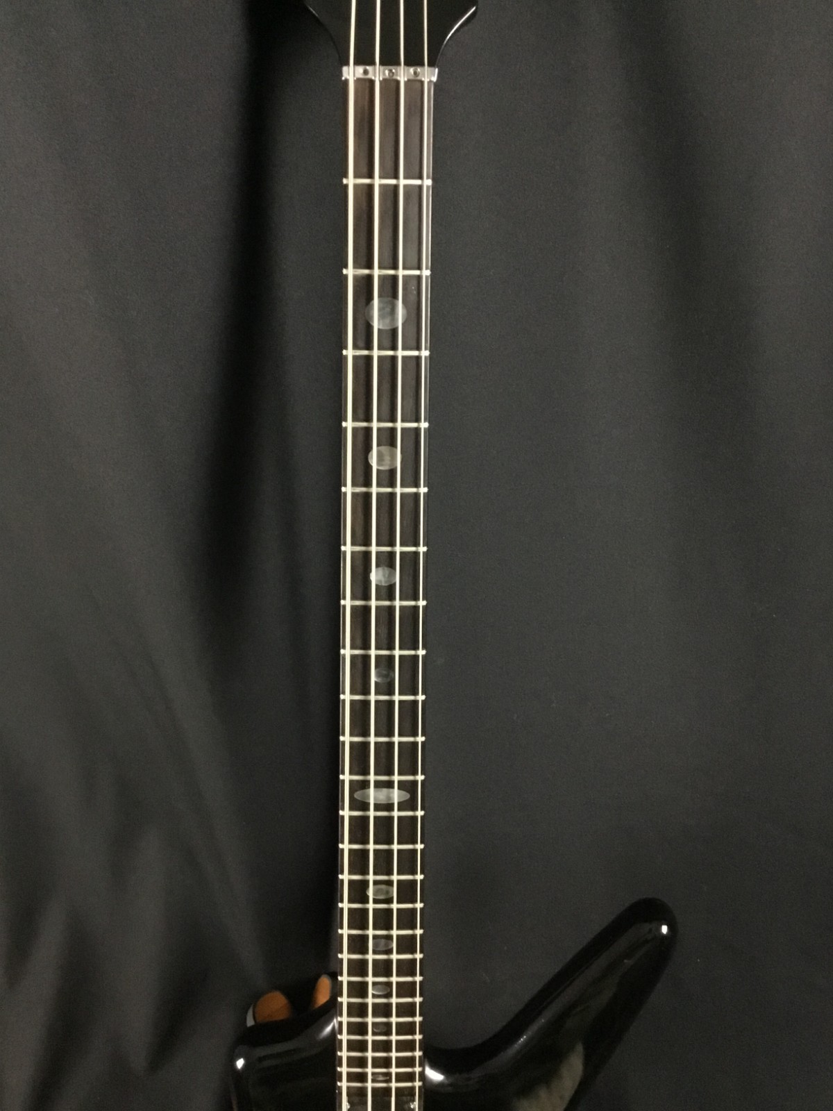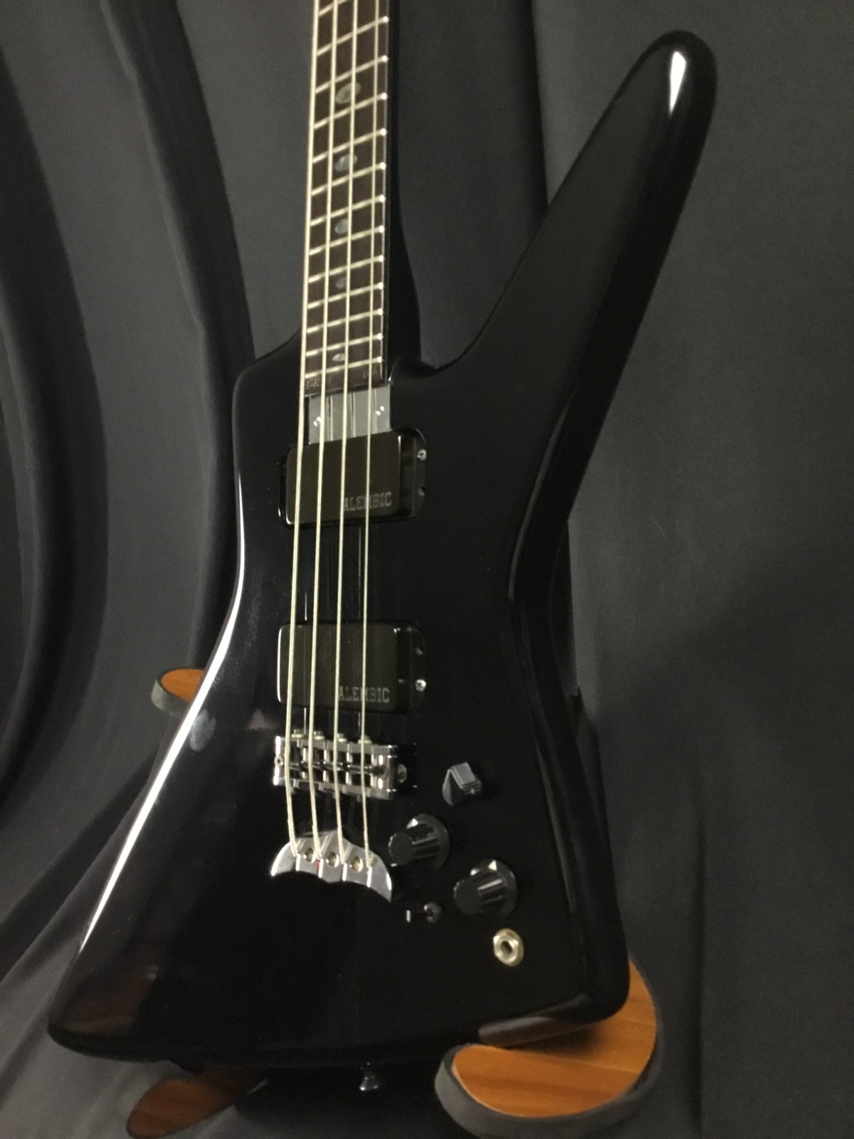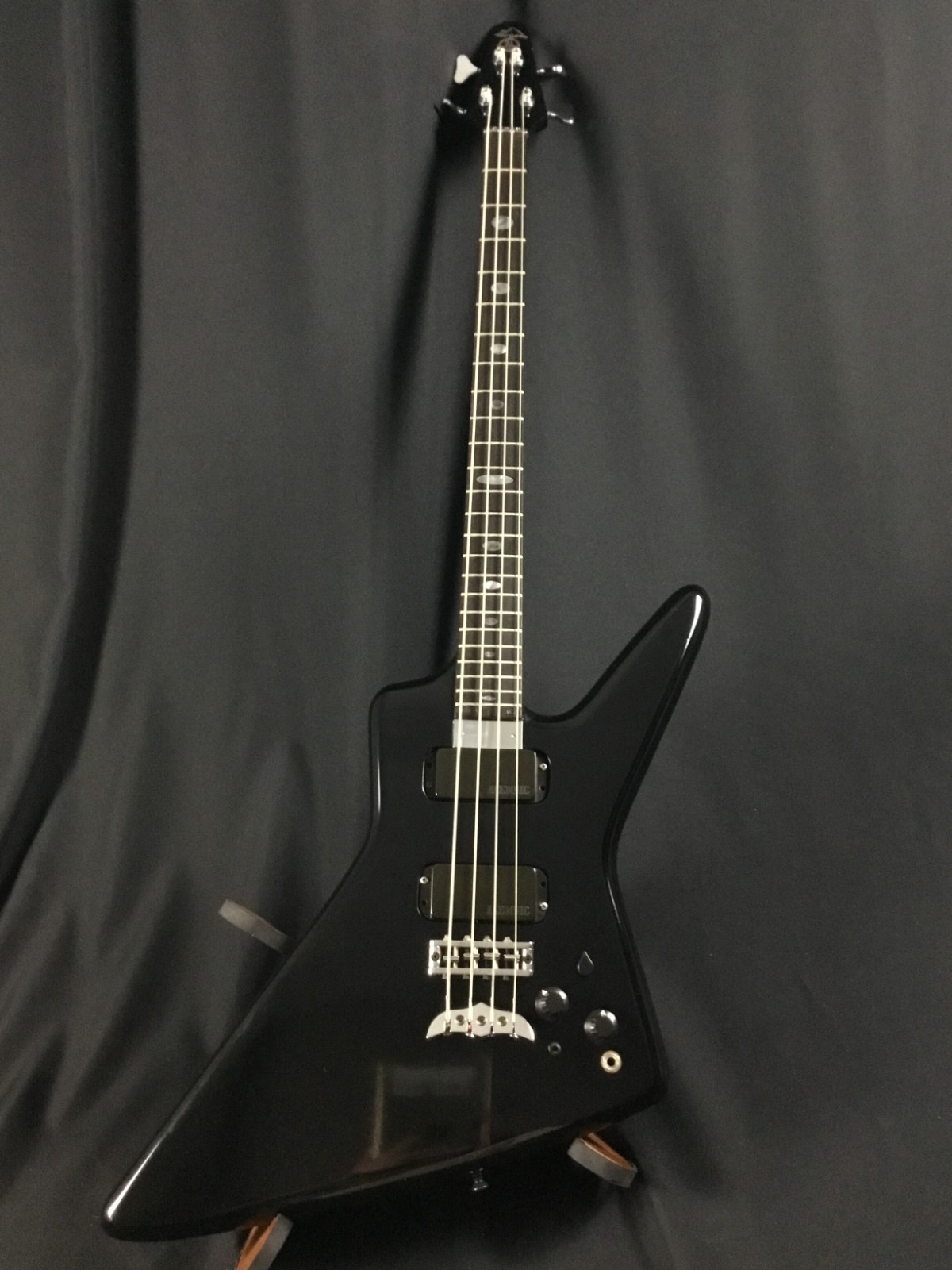This is a used guitar in good condition, sold as-is. The cool bass from 1984 has a maple neck-through body, with a 24-fret rosewood board, 32″ scale length, and chrome hardware. The Spoiler has two pickups with an onboard Q-switch and sweepable low-pass filter for some very unique bass tones. Has some