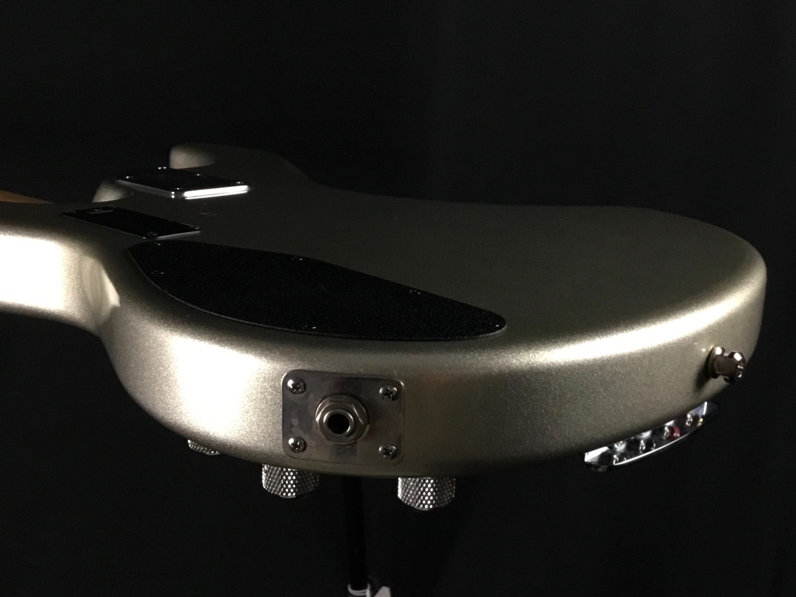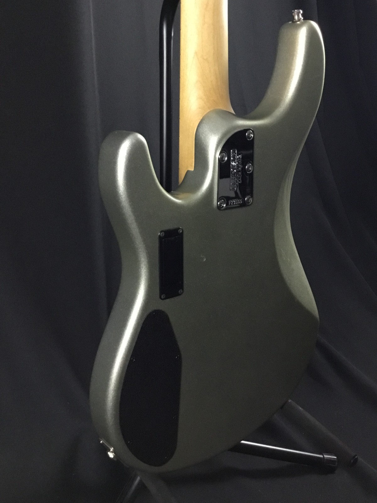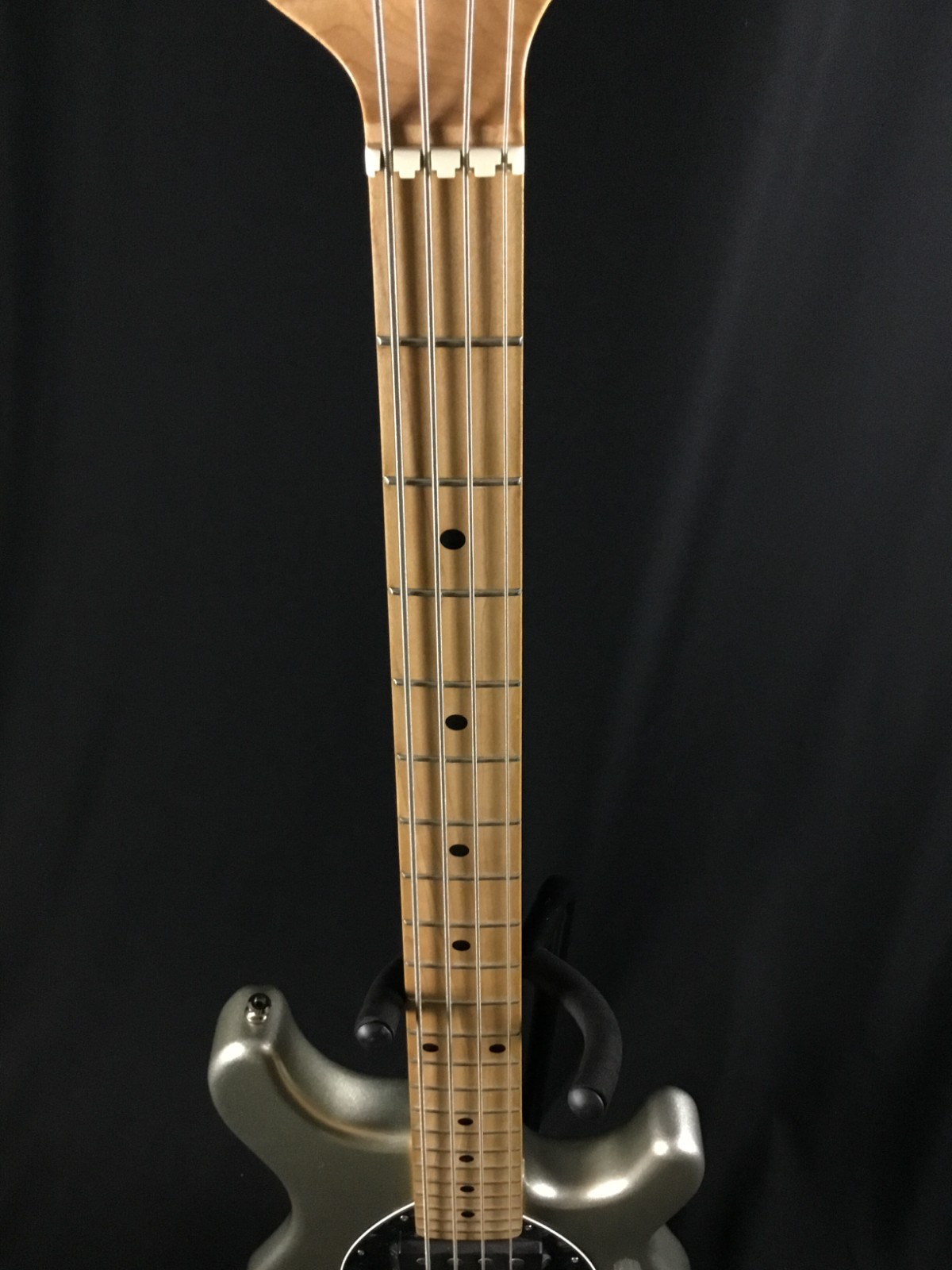 This is a used guitar in good condition, sold as-is, as pictured. Previously owned bass in great playing condition. Ernie Ball Music Man, made in Dec. 2008. Maple neck and fretboard, chrome hardware, black perloid pickguard. From web description: Nine volt active 3 band EQ preamp, 3 position pickup selector switch, and a ceramic humbucker with hum canceling phantom coil come standard, equipping the Sterling to cut through any mix. The optional addition of a pickup in the neck position adds even more versatility