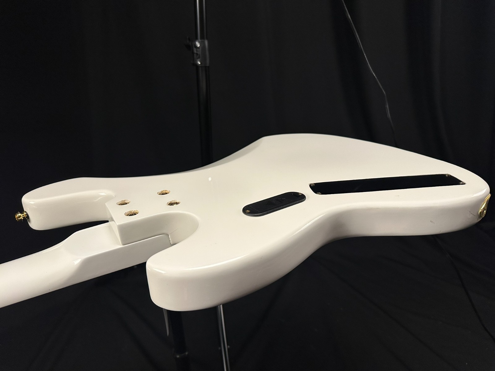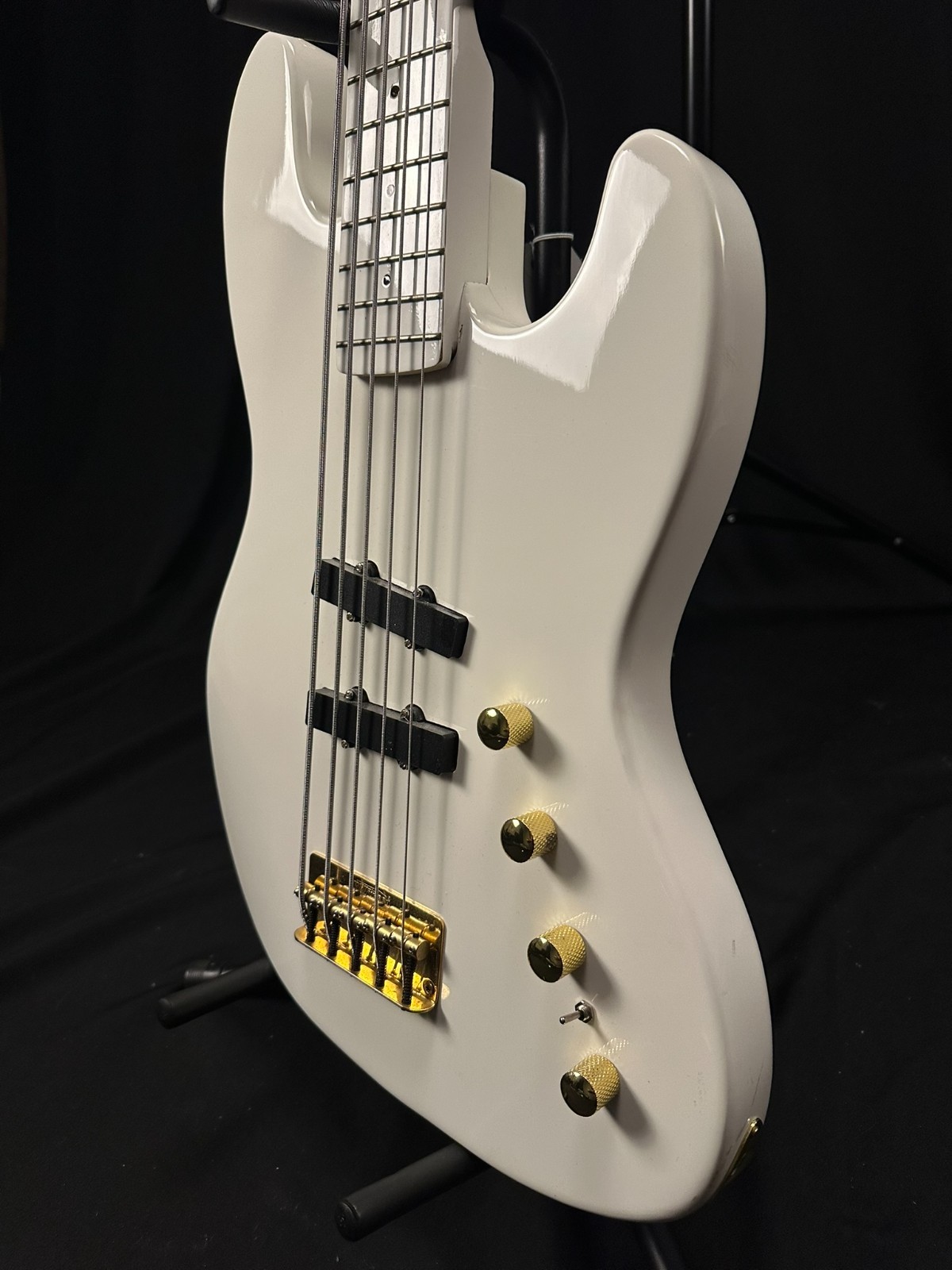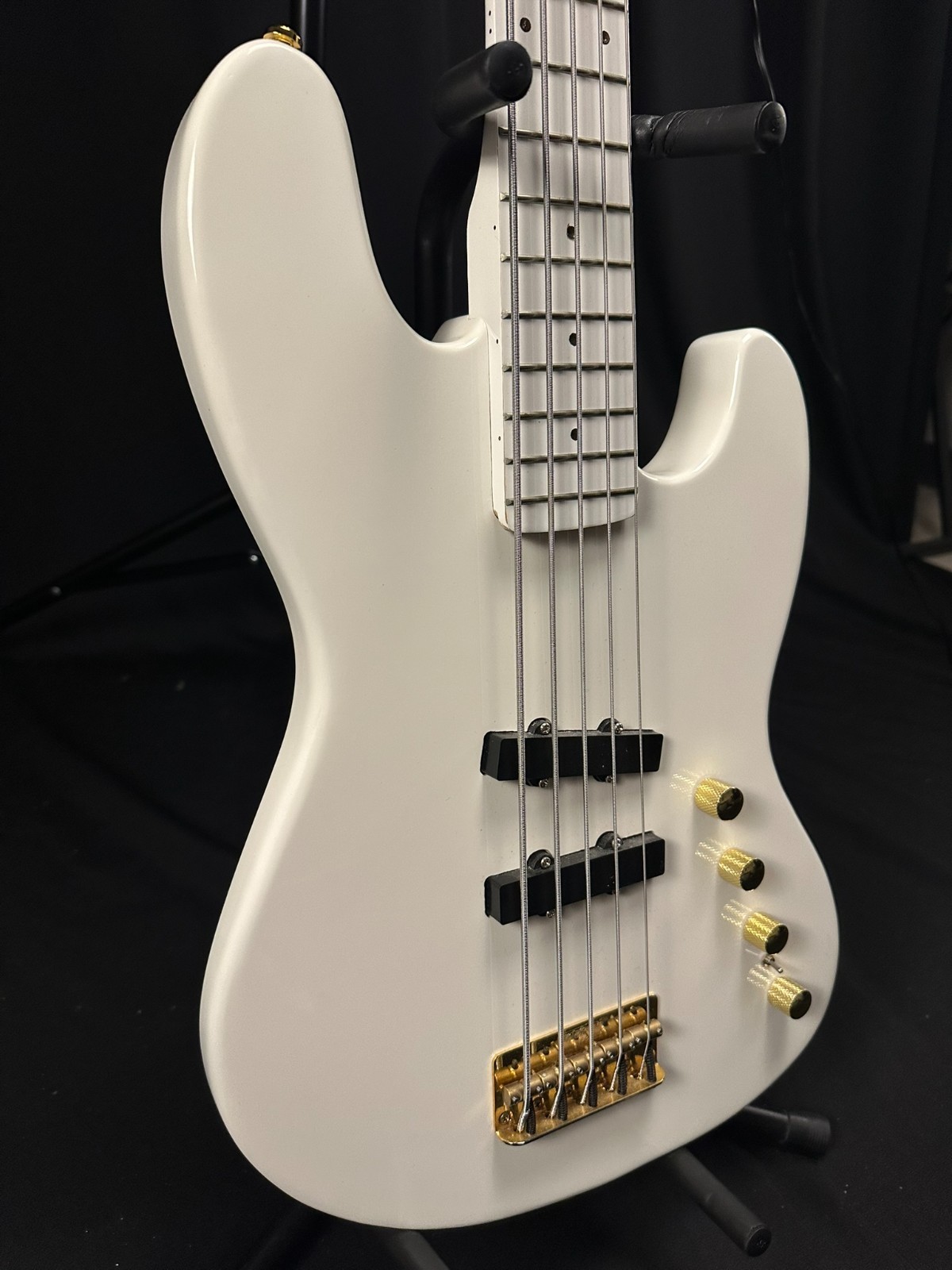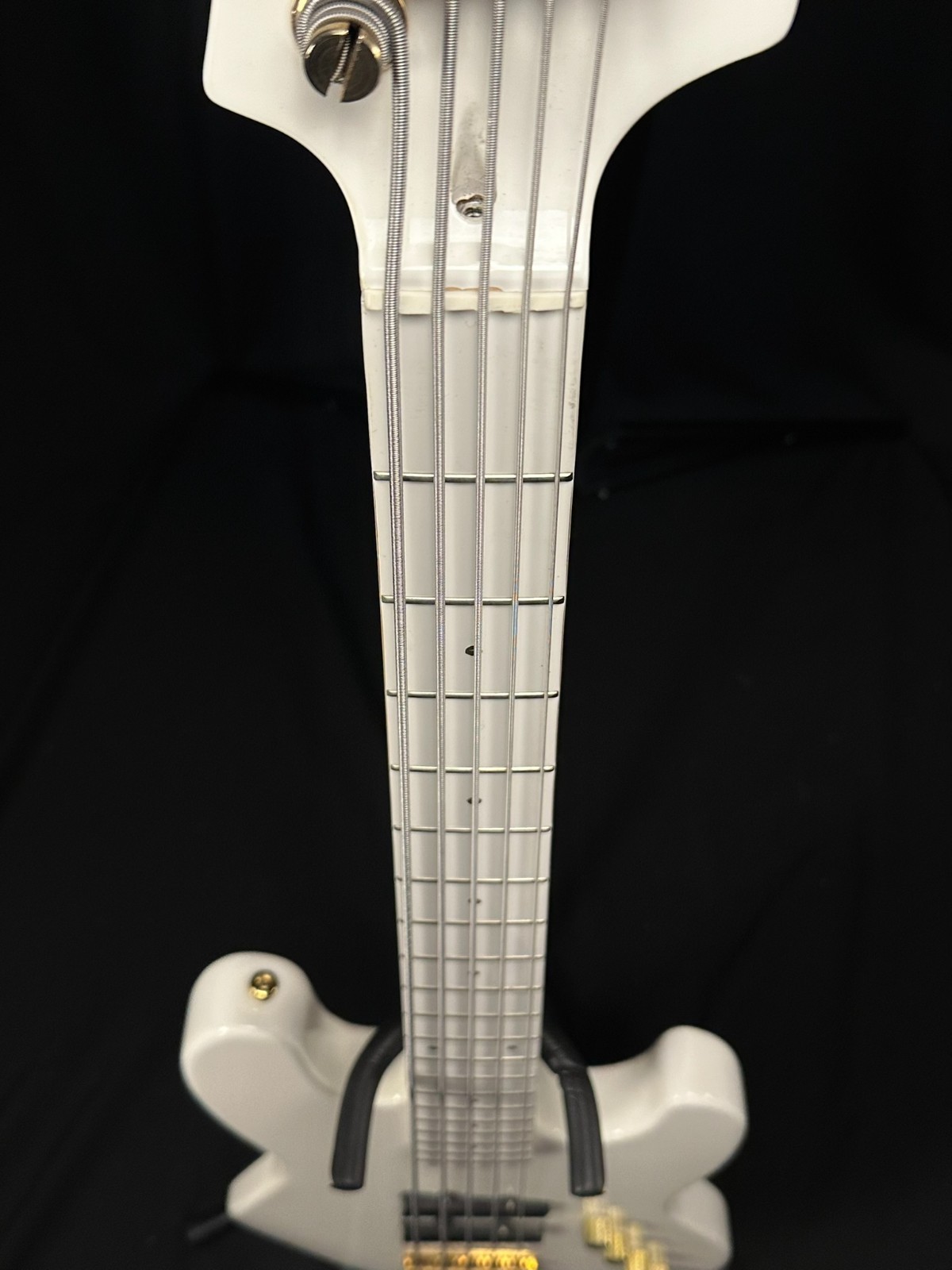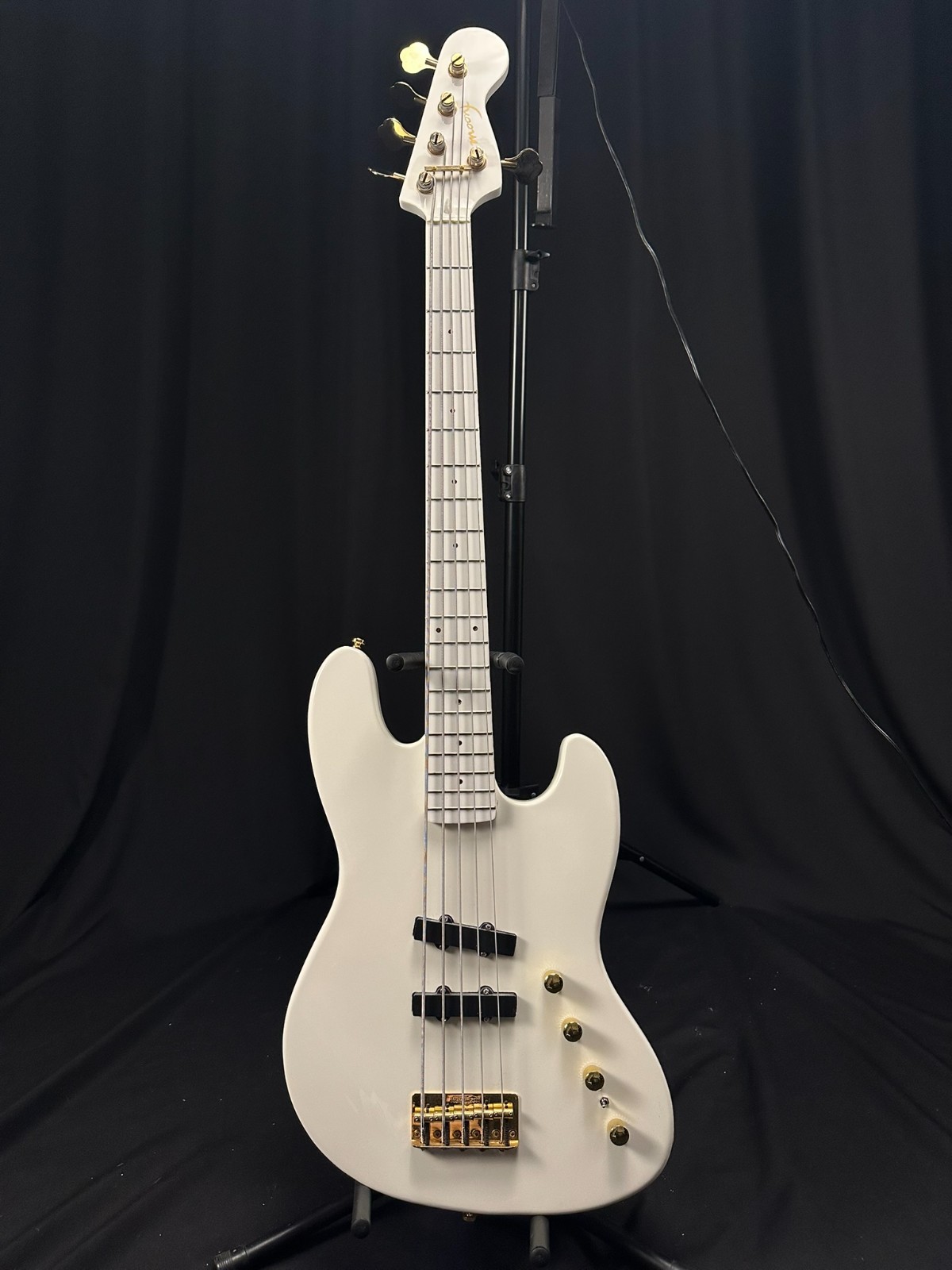 This is a used FAKE Moon LG5 5 String Bass. All White. Has been set up by a professional luthier and is ready to play. Nut replaced. Light-up fret markers do NOT work. Comes with hard case. This is NOT a real Moon but plays well. Instrument is sold as-is, as pictured.