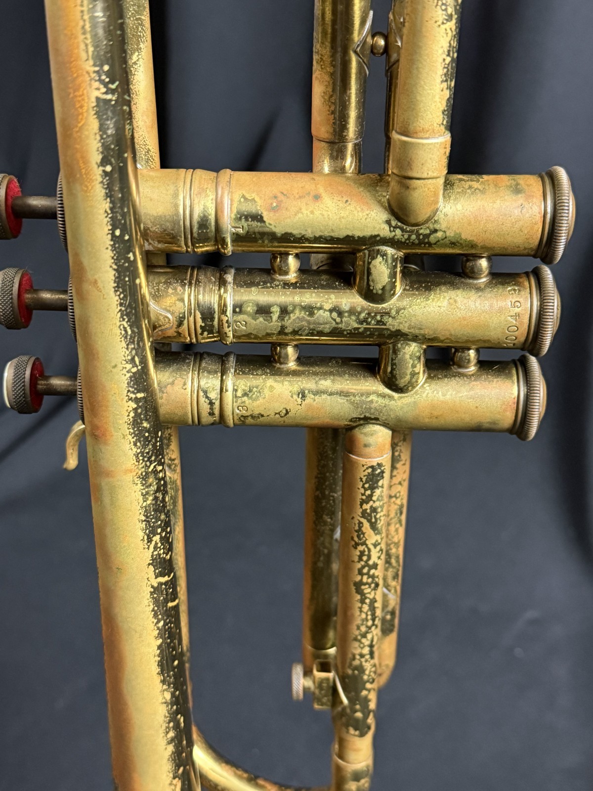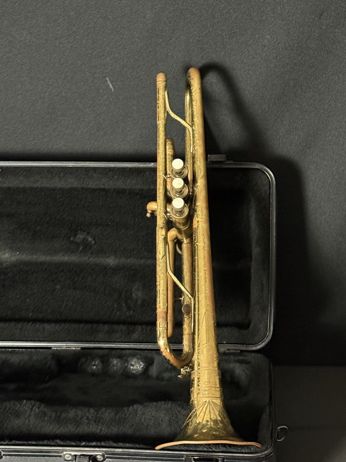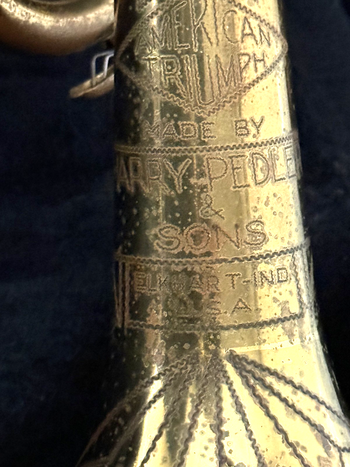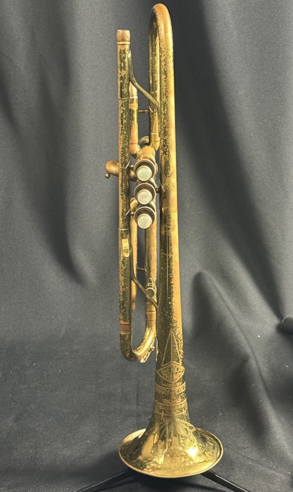 This is a used/vintage Harry Pedler & Sons American Triumph Trumpet, made in 1957.