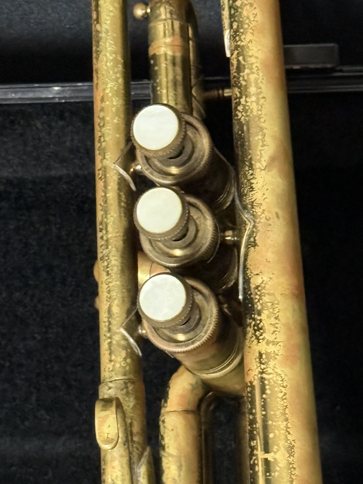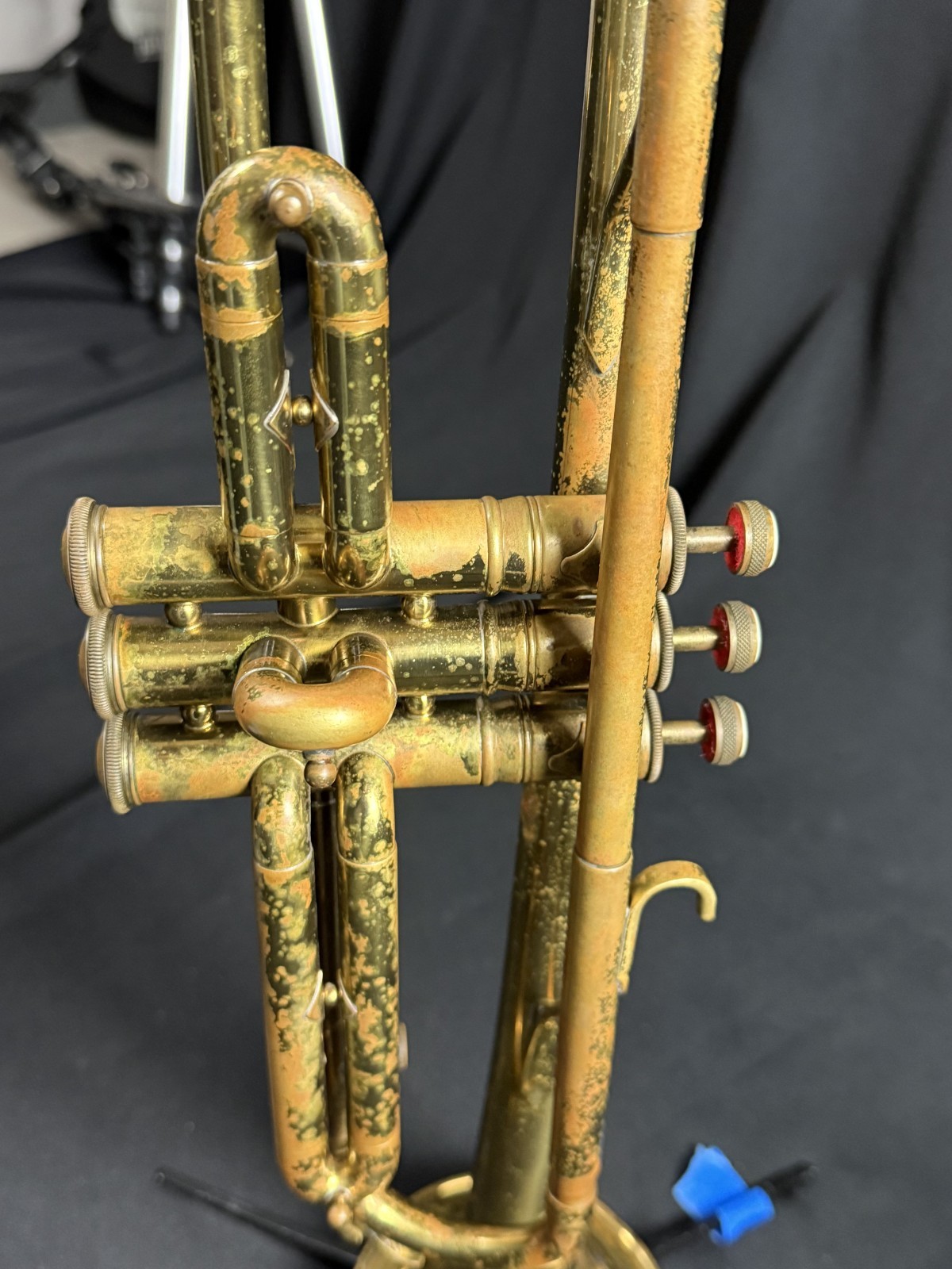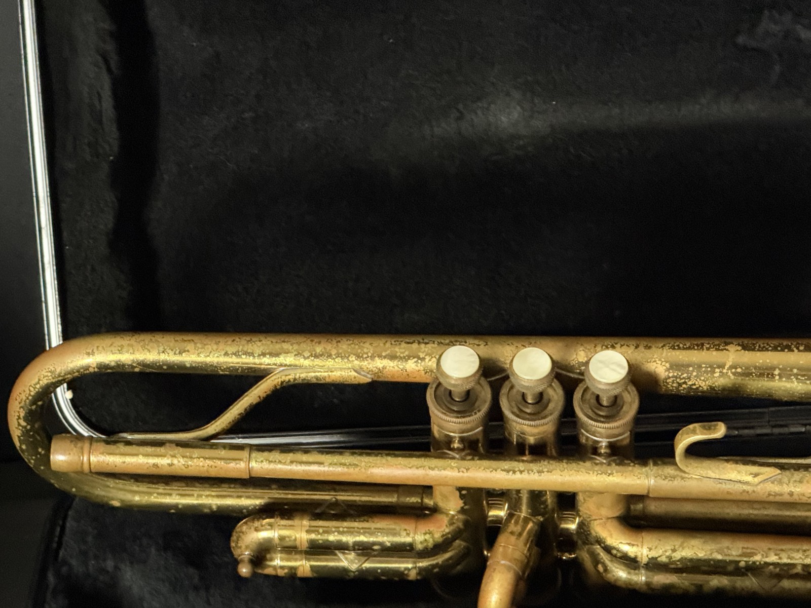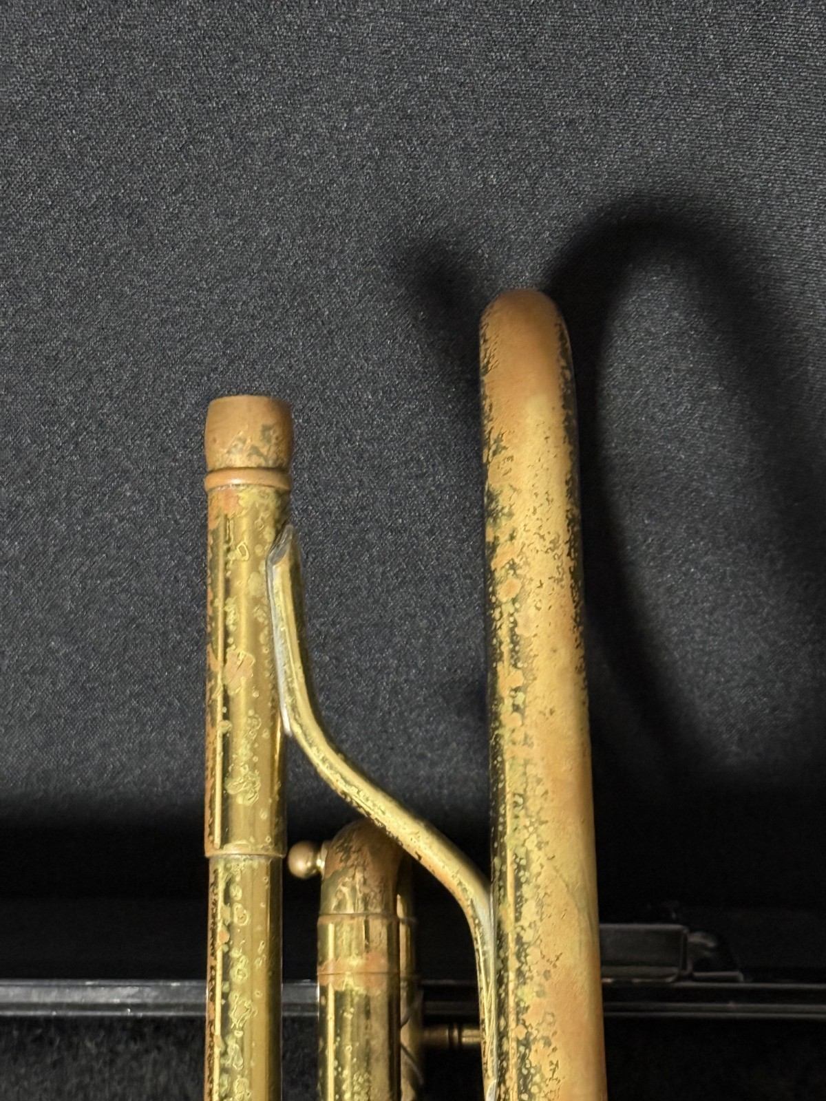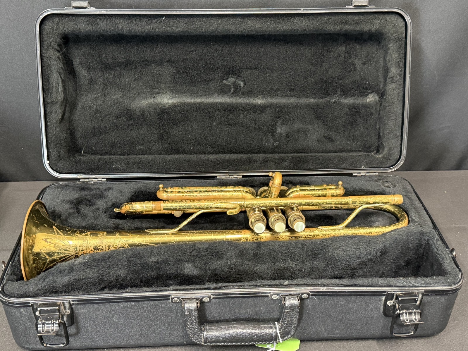 Has been ultrasonic cleaned, oiled, greased, some new felts and corks, valves and slides work, and instrument is in good playing condition, as seen in the video