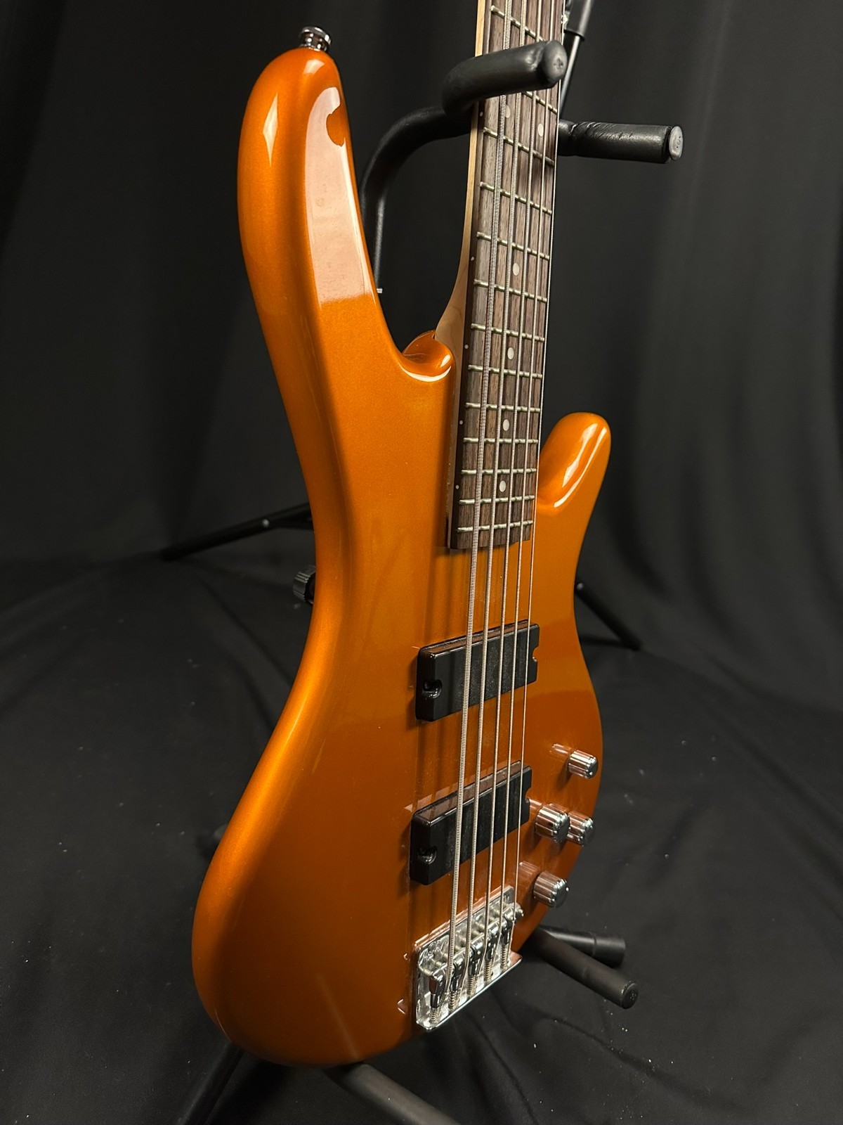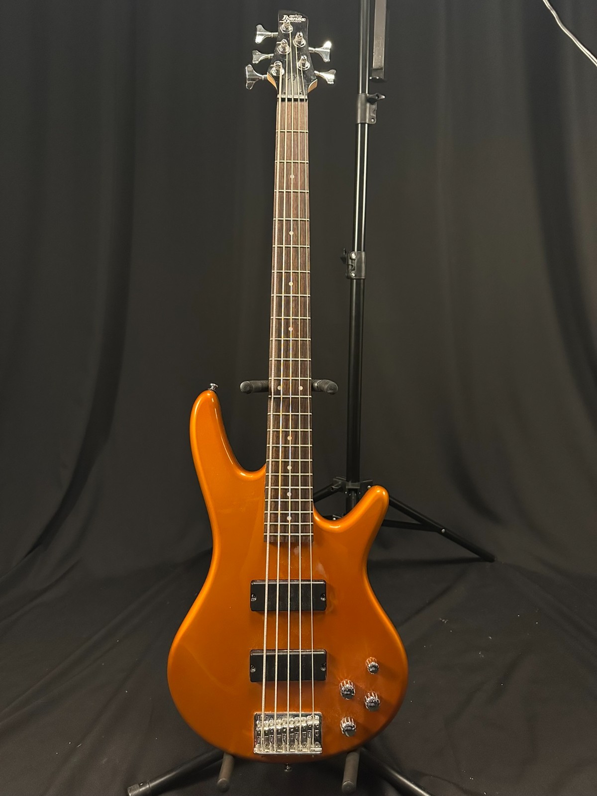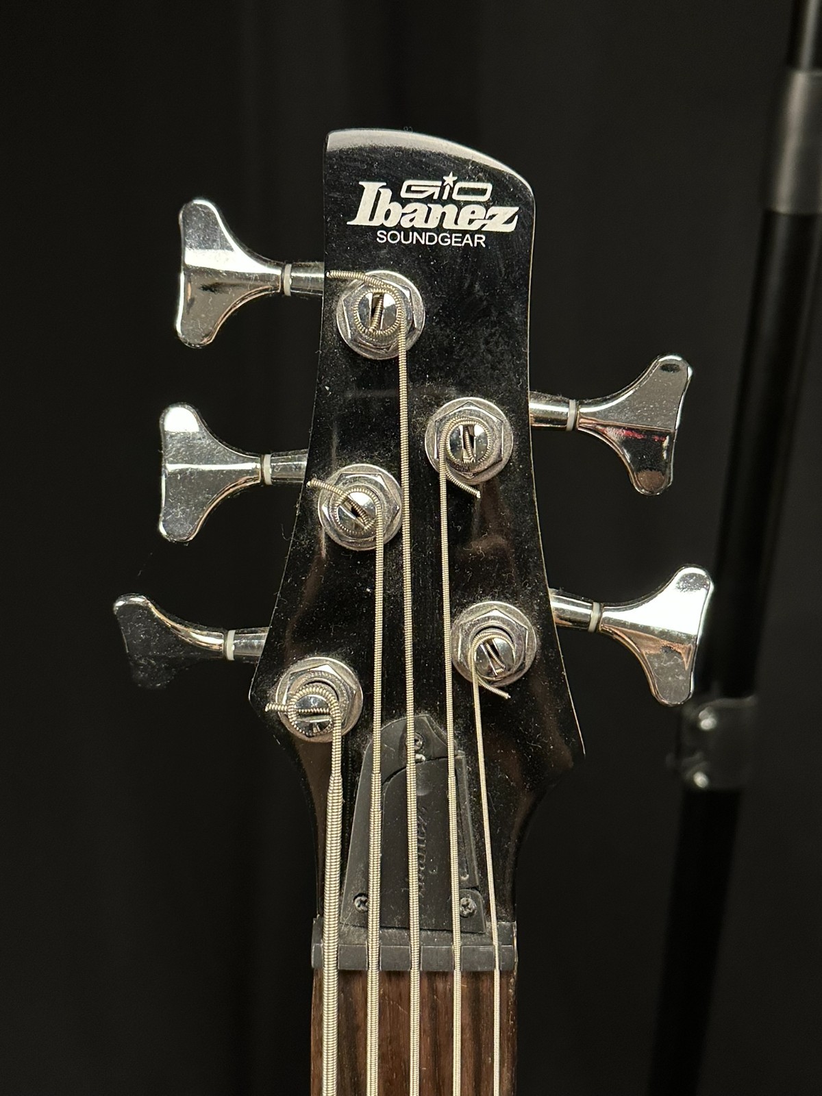 This is a used Ibanez Gio GSR205 5 String Bass. Has been set up by a professional luthier and is ready to play. Comes with leather strap and soft Road Runner case. Instrument is sold as-is, as pictured.