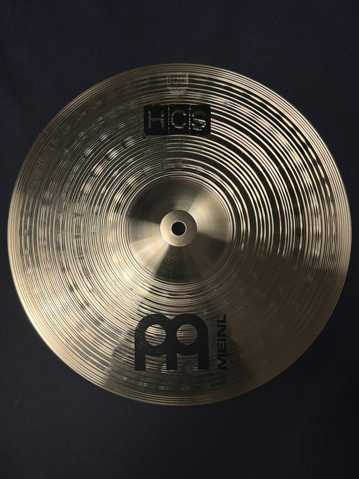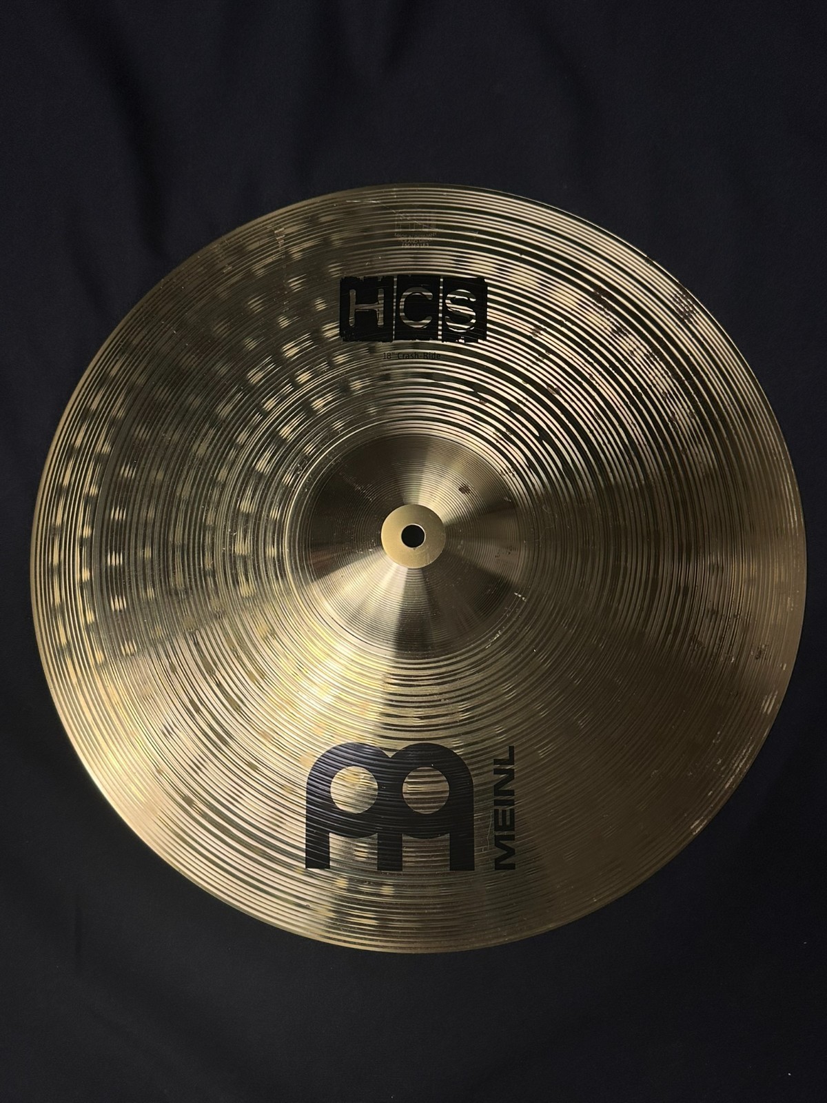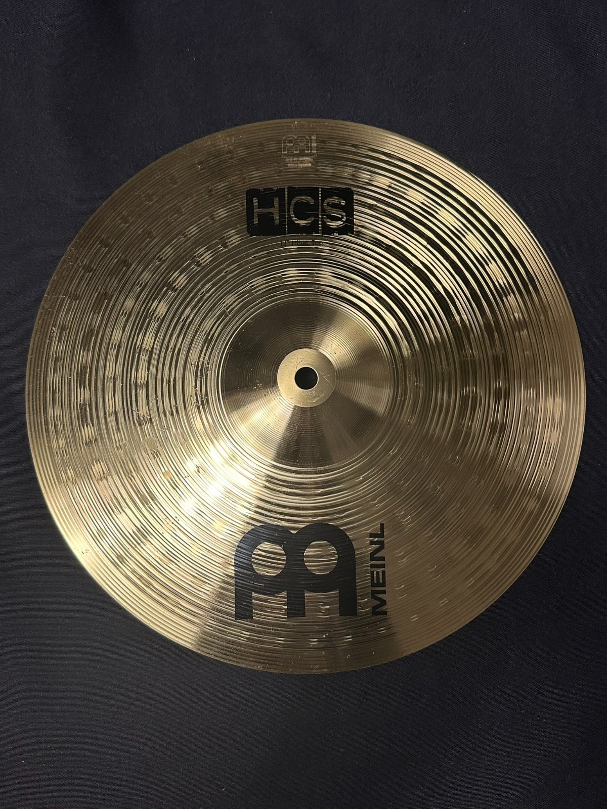 This is a used set of Meinl cymbals, a 13-inch hi-hat, 14-inch crash, and 18-inch crash-ride.