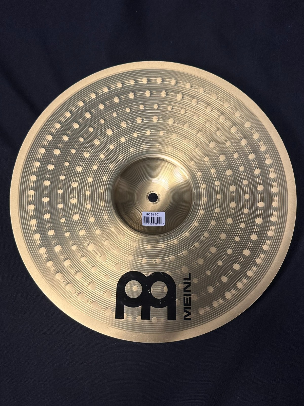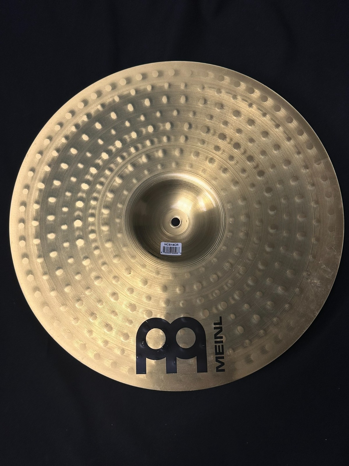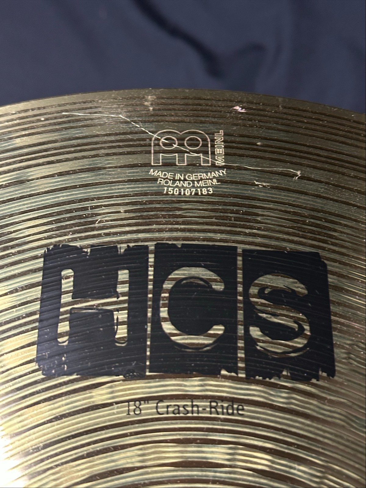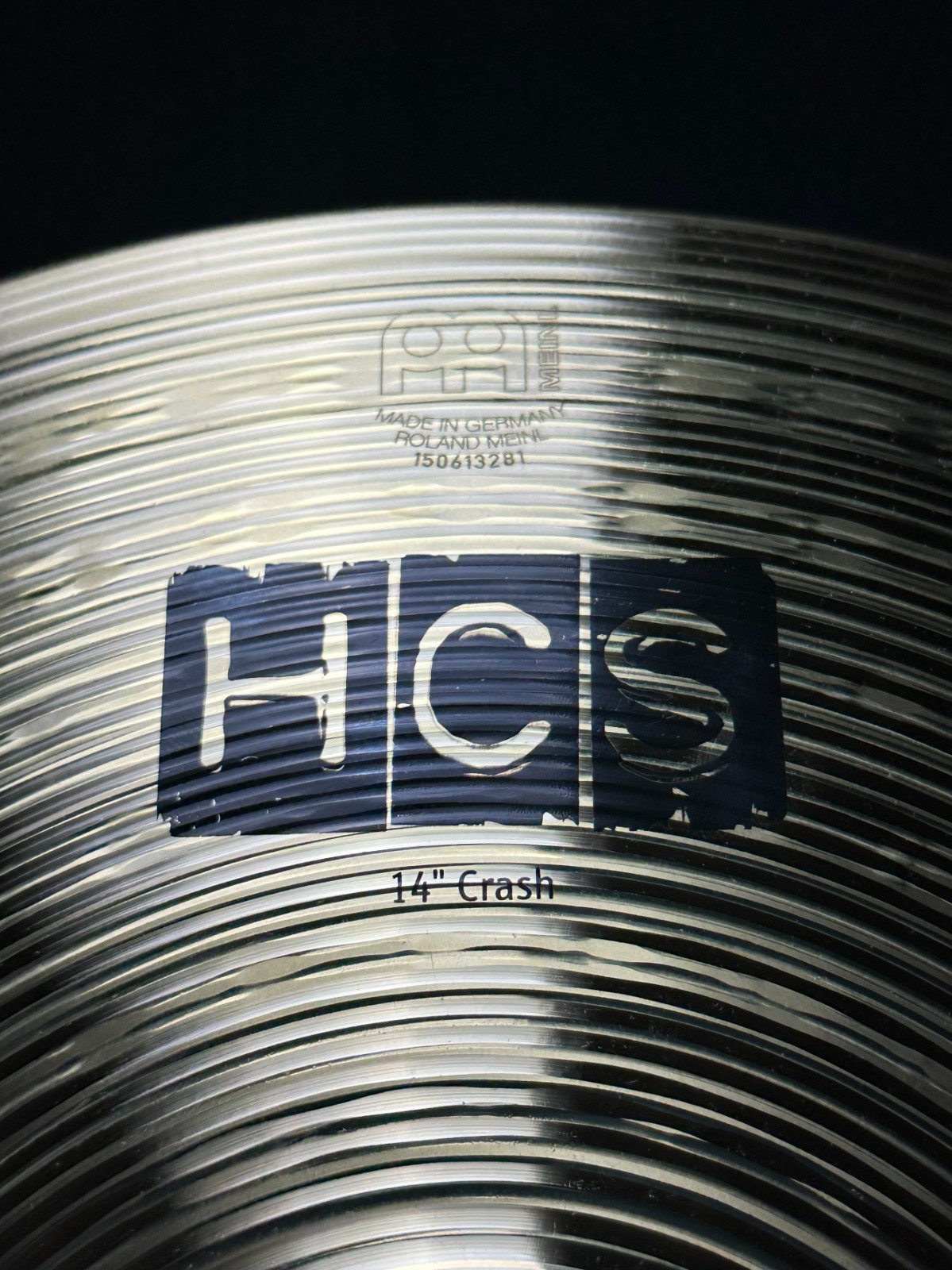 This is a used set of Meinl cymbals, a 13-inch hi-hat, 14-inch crash, and 18-inch crash-ride.