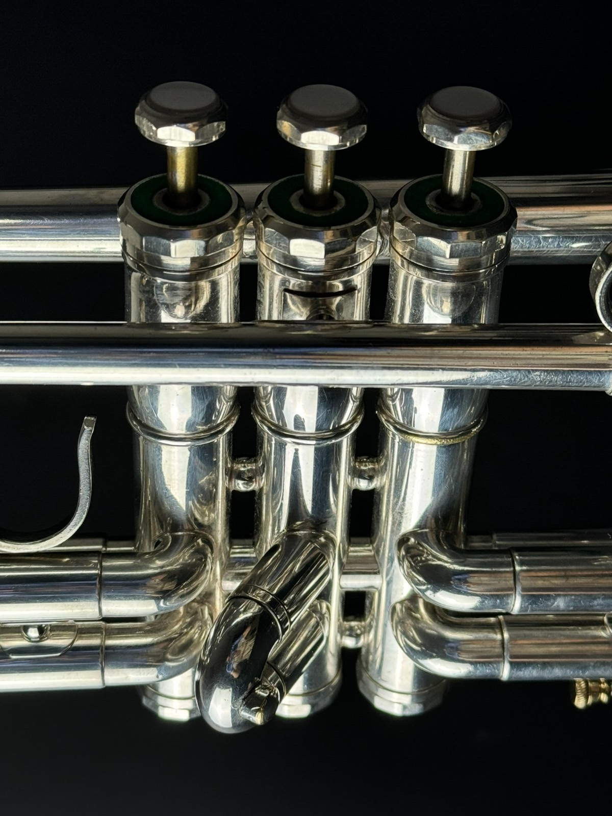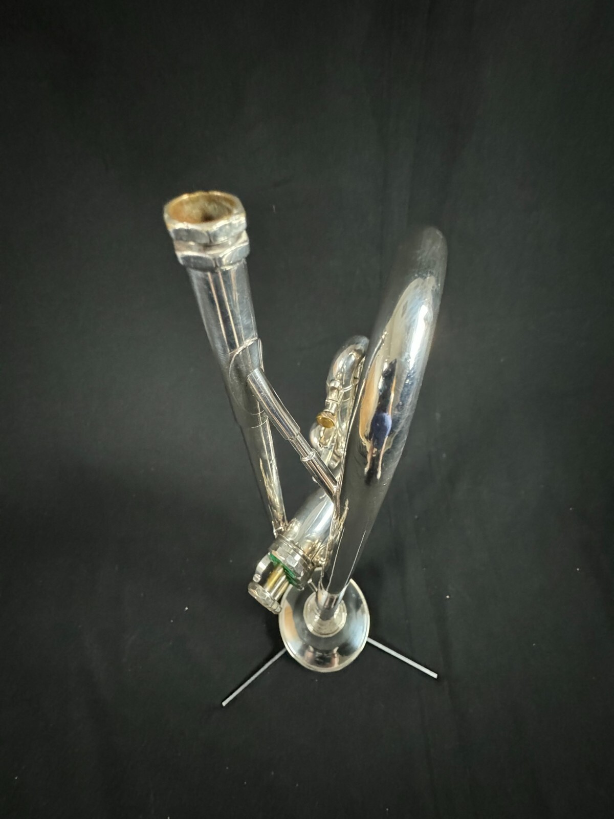 This is a used instrument in great condition, sold as-is. Slides and valves work well. Good playing condition. Estimated to be produced in 1972 – SN#836594. Beautiful instrument!
