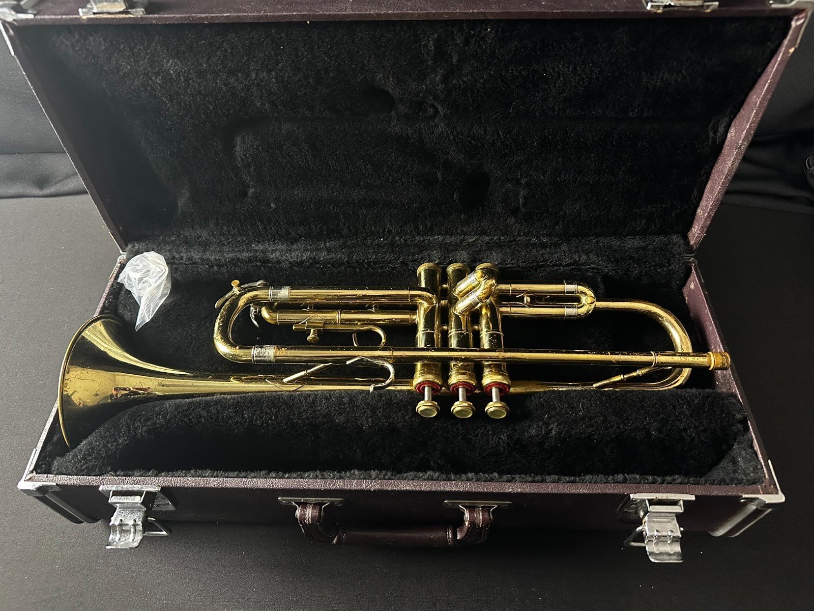 This is a vintage, used instrument in working condition, sold as pictured. Wear and tear consistent with age and use. Includes Reynolds 7C Mouthpiece and Case, Valves and Slides work well. Ready to Play!