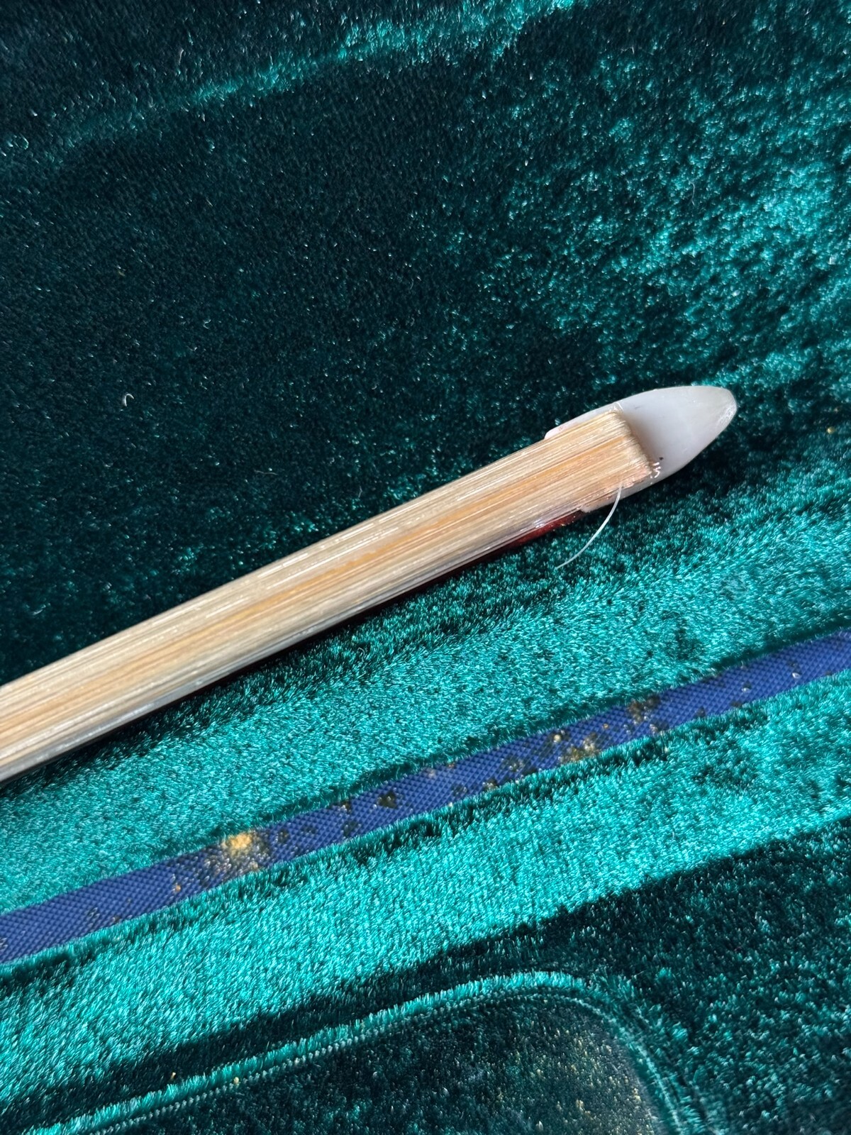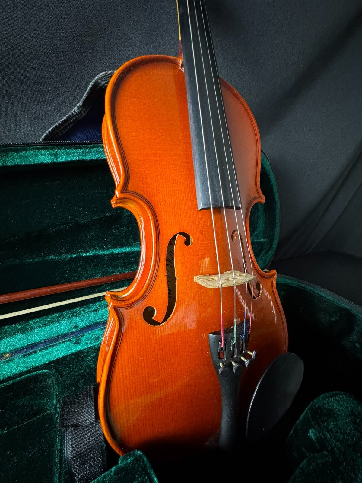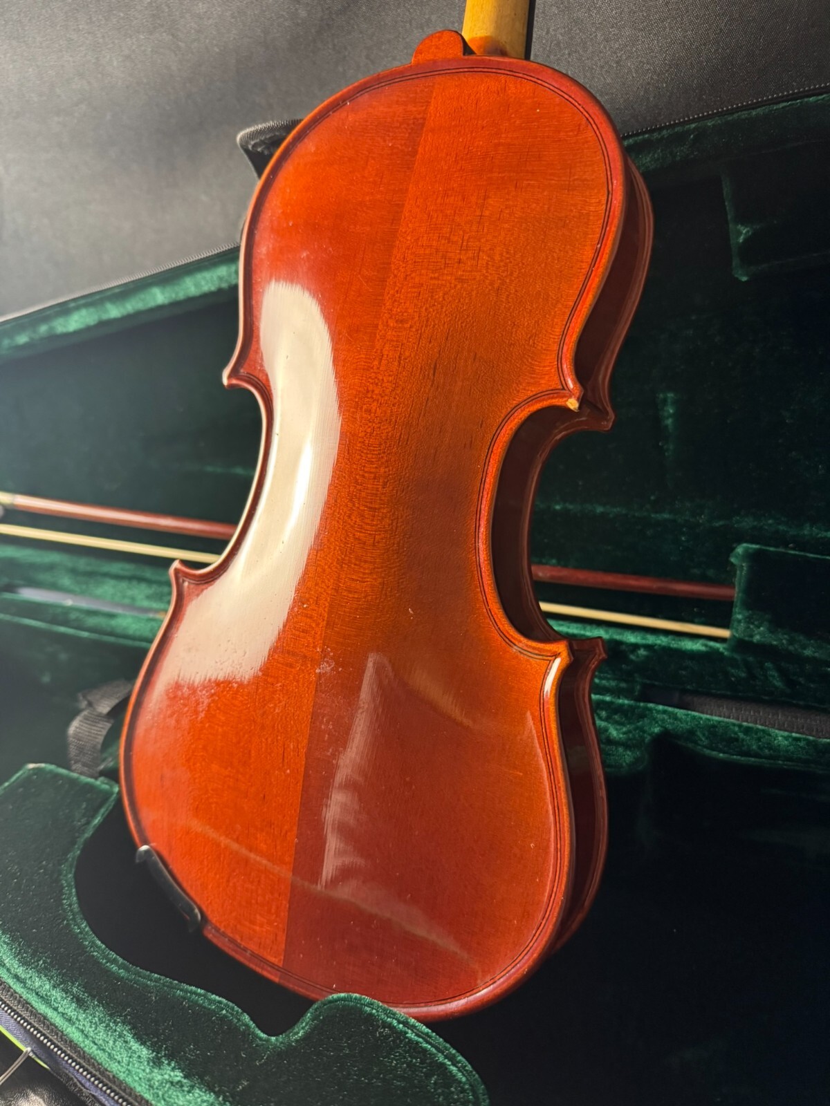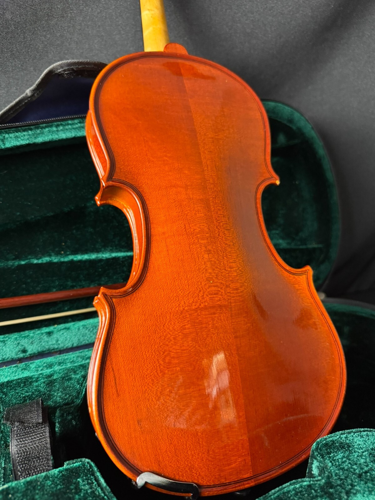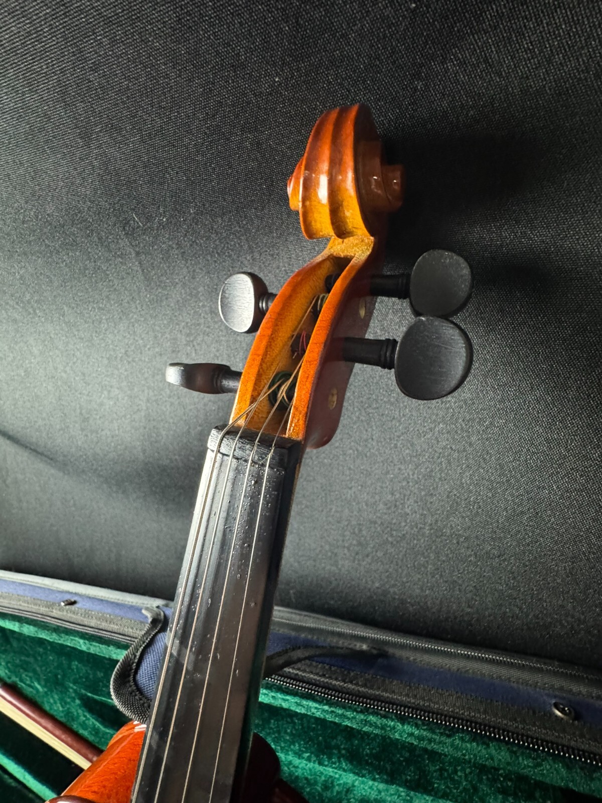 This is a used violin, sold as-is. Wear and tear consistent with age and use.