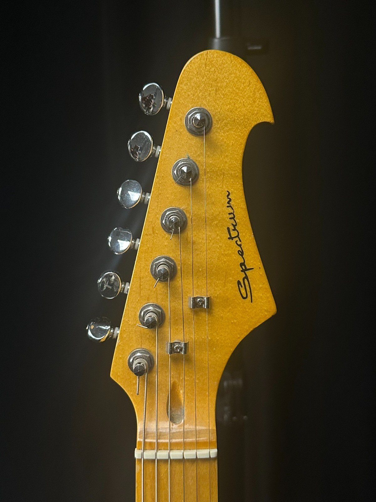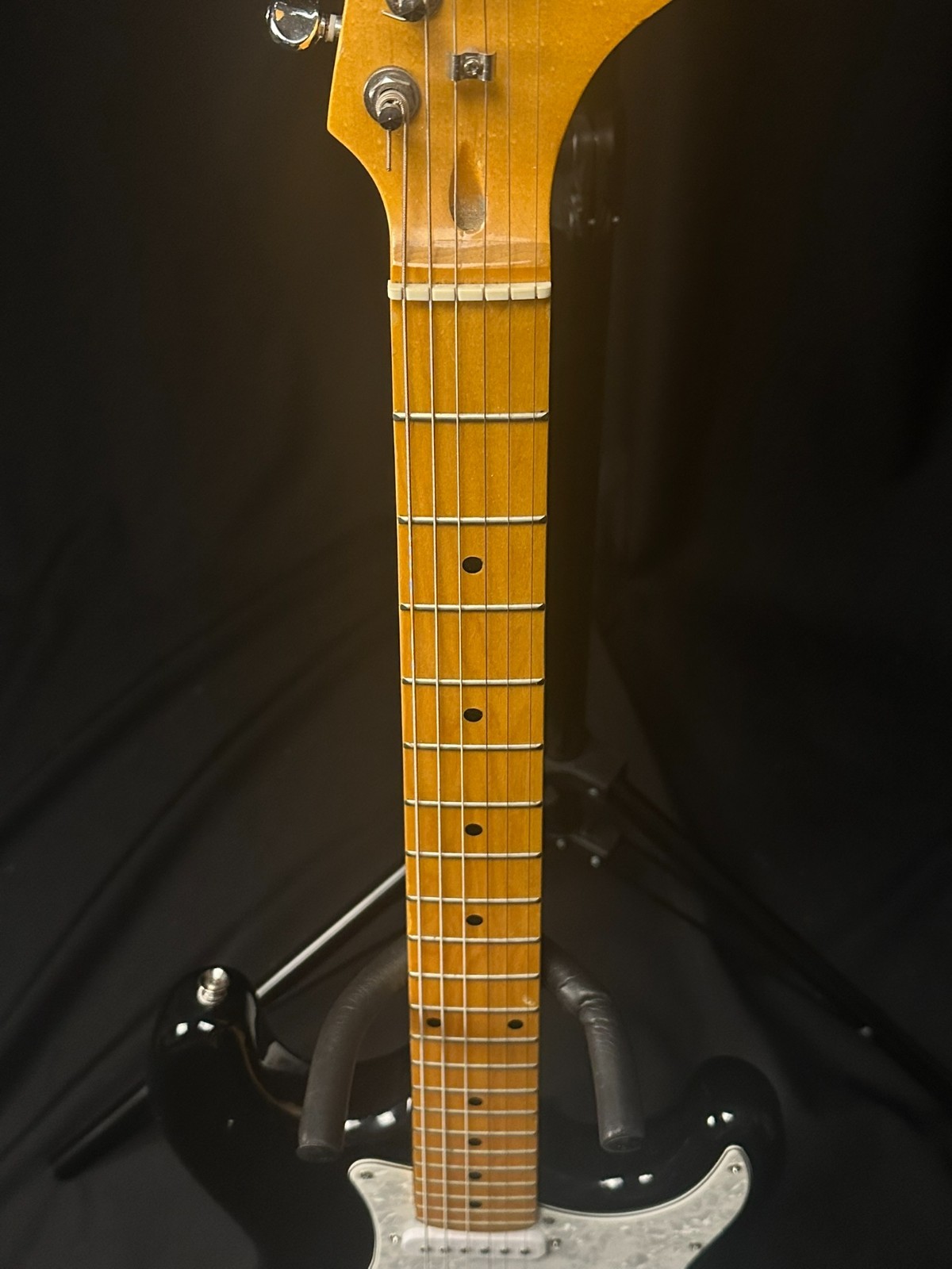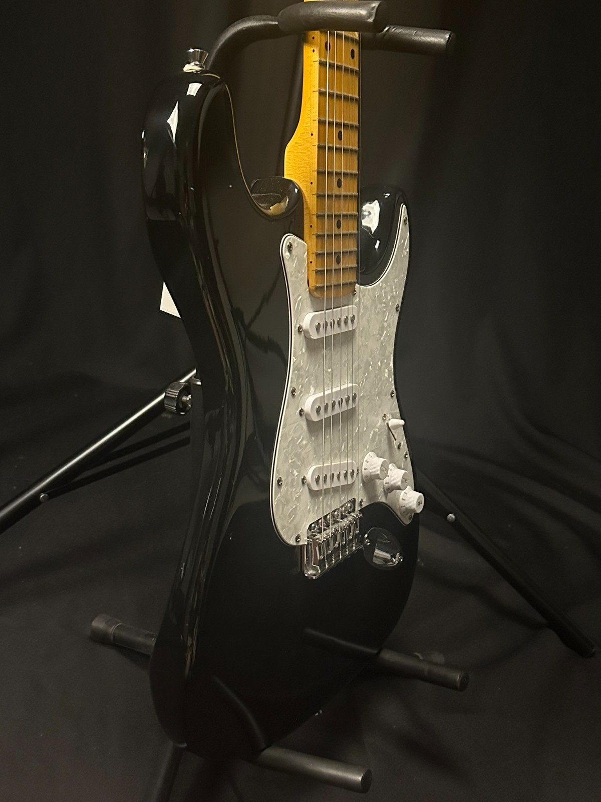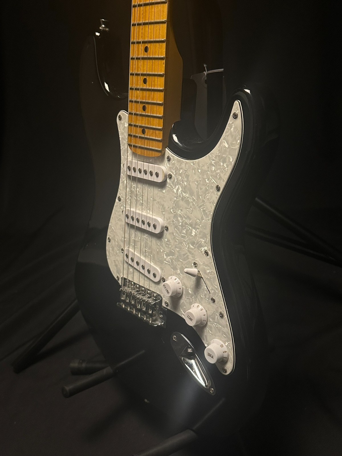 Used Spectrum Electric Guitar, black and white. Has some scratches and wear consistent with use but has been setup by a professional luthier and is ready to play.