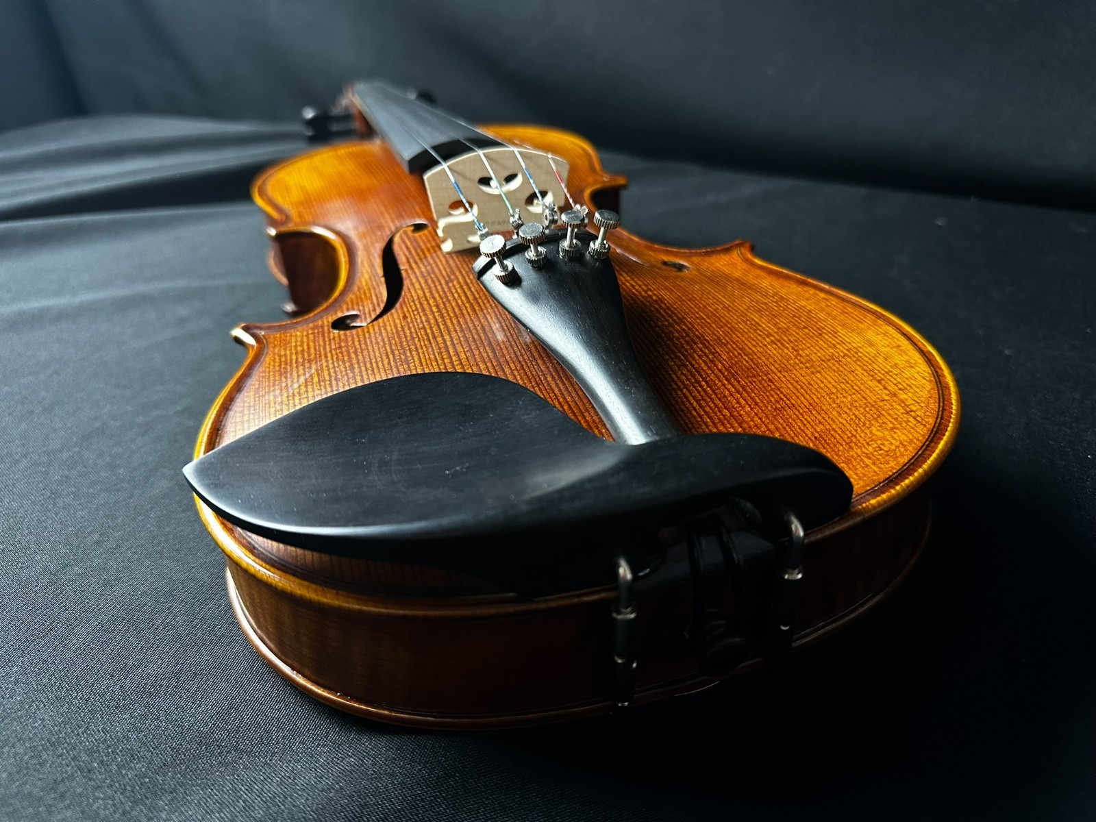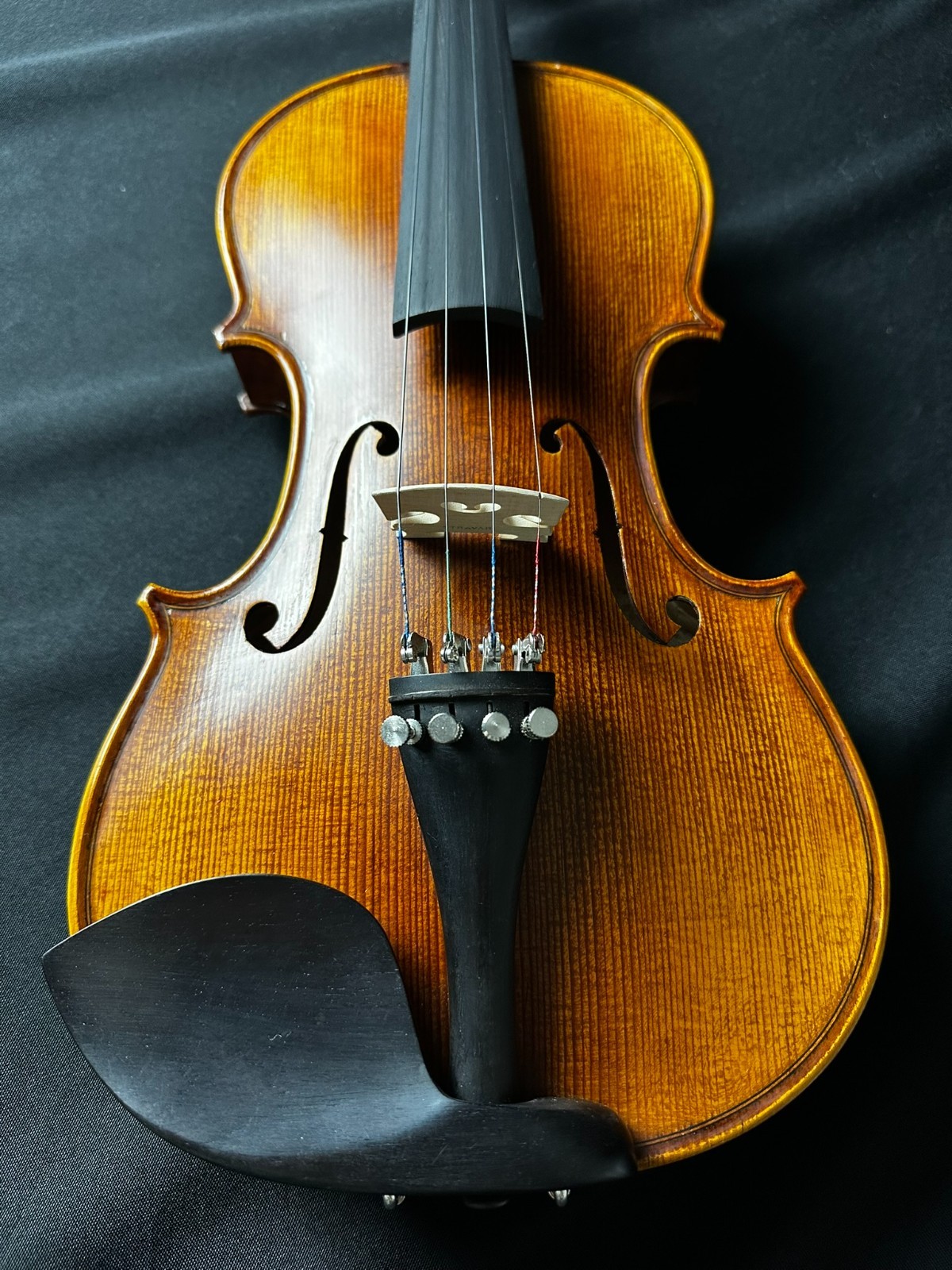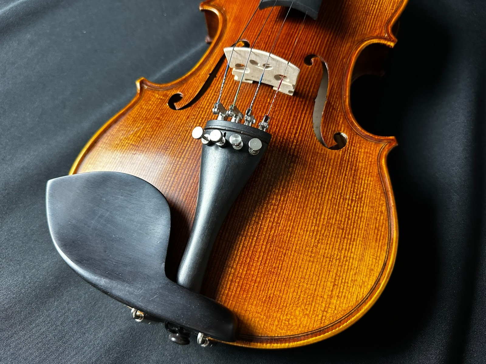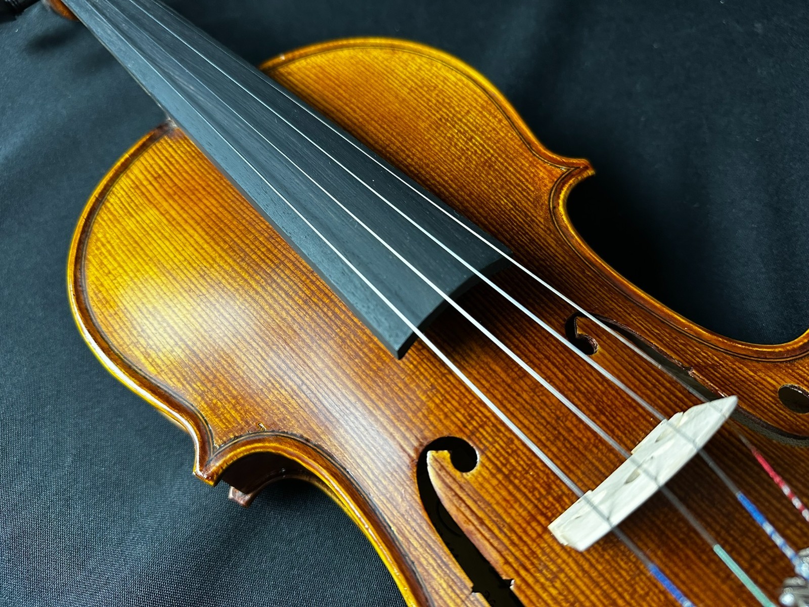 This is a used instrument in good condition, sold as pictured. Minimal wear and tear consistent with age and use. Includes case and bow. Lovely instrument with gorgeous flaming on the back and sides.