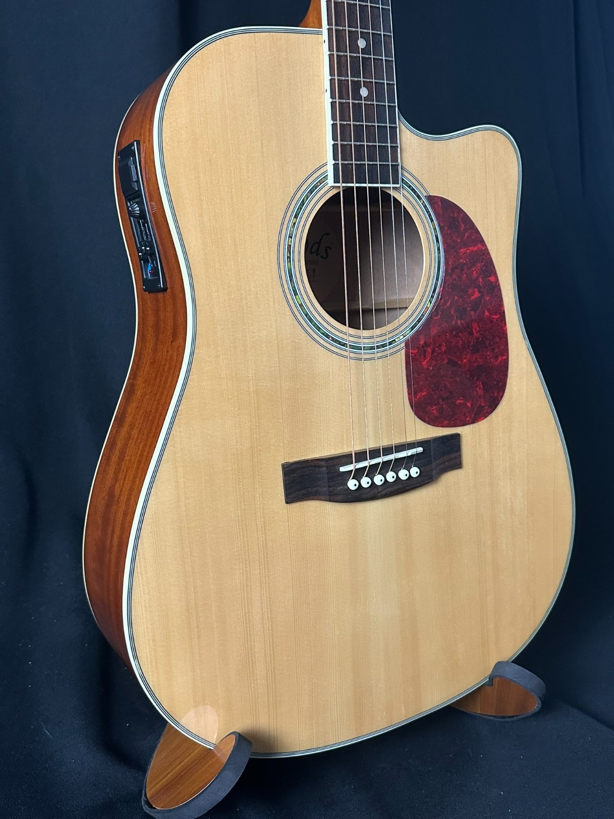 Pre-owned Woods Guitar. WG93 Acoustic-Electric Cutaway. Web description: Laminated Spruce Top, Rosewood fingerboard/bridge.