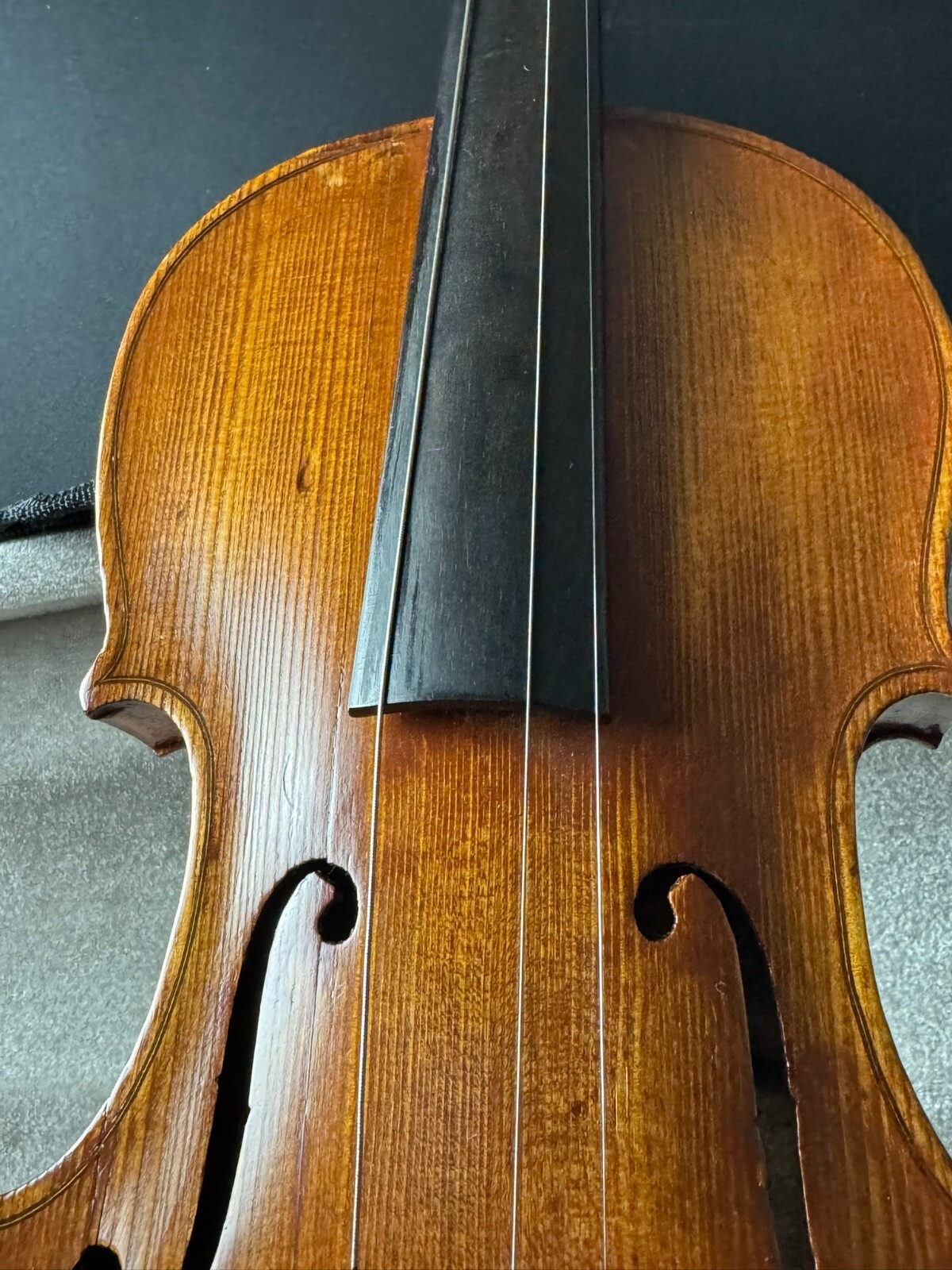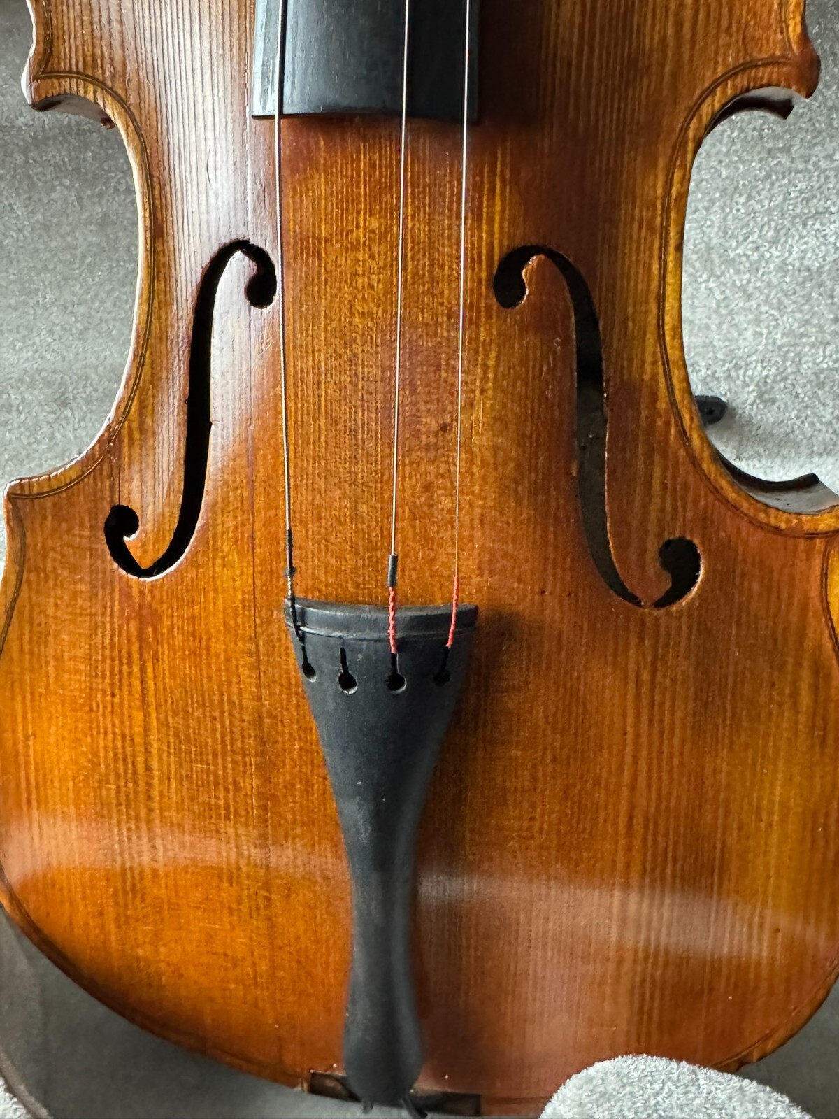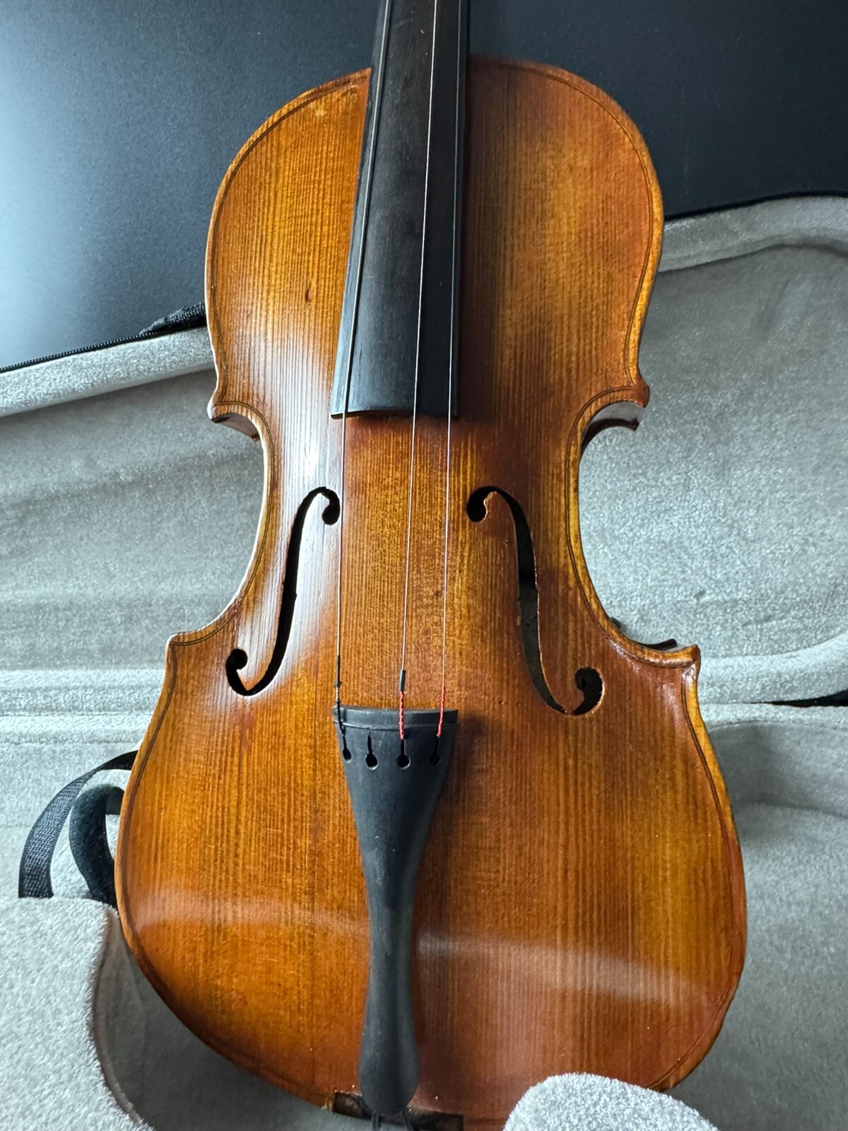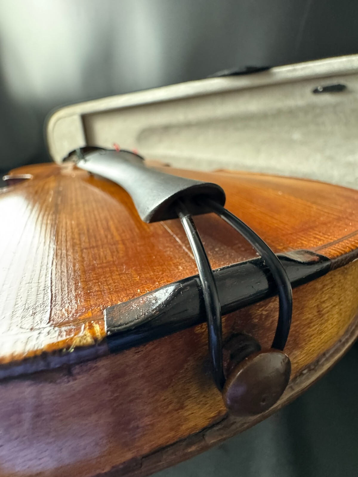 This is a used instrument, sold as-is. Needs a restring and bridge reset(included). No chinrest.
