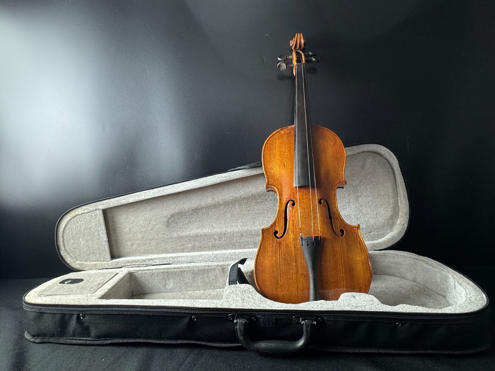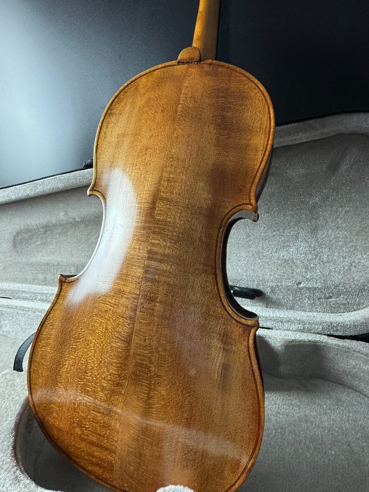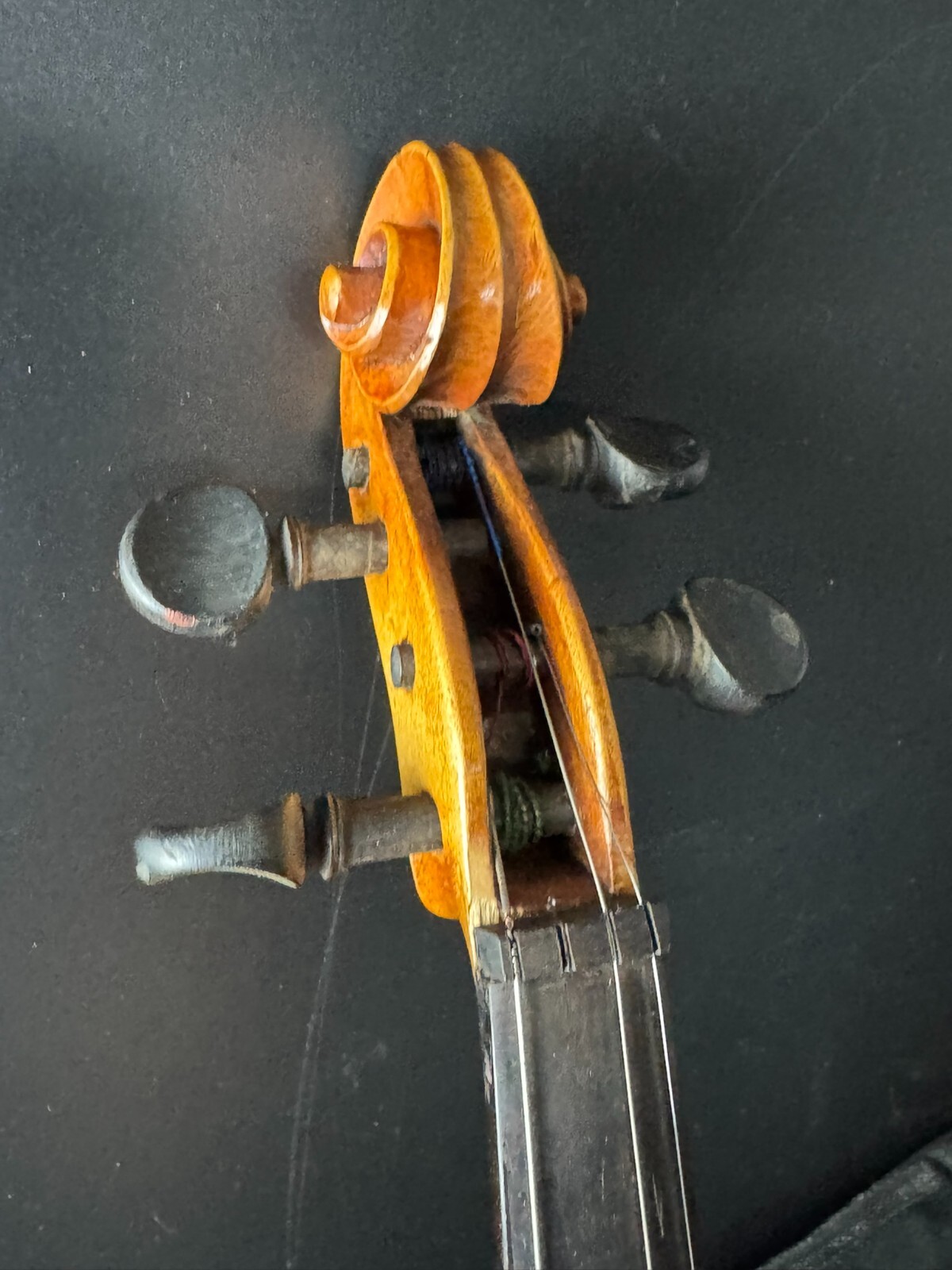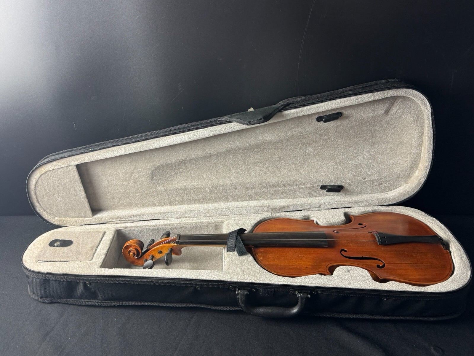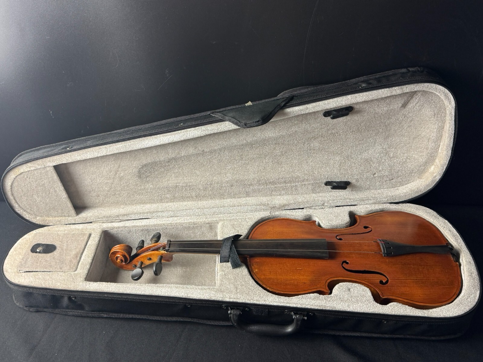 This is a used instrument, sold as-is. Needs a restring and bridge reset(included). No chinrest.